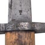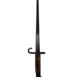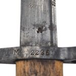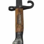 Prachtige Nederlandse Hembrug M.95 bajonet van het Korps Mariniers en de marine. De bajonet voor het Hembrug geweer voor het Korps Mariniers en de marine zijn goed te herkennen aan de afwijkende krul, de schroef om de houten handvatten los te maken en de afwijkende schede. De handvatten konden los gemaakt worden zodat het onderhoud vanwege het zoute zeewater wat makkelijker werd. De vroege aanmaken werden in Oostenrijk besteld, samen met de aangekochte M.95 geweren. Latere aanmaken werden door de Artillerie Inrichtingen vervaardigd. Dit exemplaar is dus een vroege aanschaf. De bajonet met krul is netjes gemerkt met OEWG, de Österreichische Waffenfabrik Gesellschaft. Deze Oostenrijkse leverancier leverde de bajonetten bij het Steyr M.95 geweer. Op het lemmet staat het keurmakers stempel gekroonde T met eronder op de stootplaat het serienummer 2340 H en aan de andere zijde M2226 dus door meerdere soldaten gebruikt. Het lemmet is nog grotendeels mooi geblauwd. Handvat is nog erg mooi. De schede is nog in een redelijke staat en is 253 gemerkt. Het sluitlusje is niet gescheurd en verkeerd nog in een soepele staat. Afwijkend model van de marine schede, de lus is breder gemaakt zodat hij ook op een Sam Brown riem past, erg bijzondere en periodieke aanpassing, dolk en schede zijn zo bij elkaar gevonden.