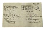 Ansichtkaart van een soldaat van de 3e brigade verbindingsafdeling, motor ordonnans C Peleton. Gedateerd 1948