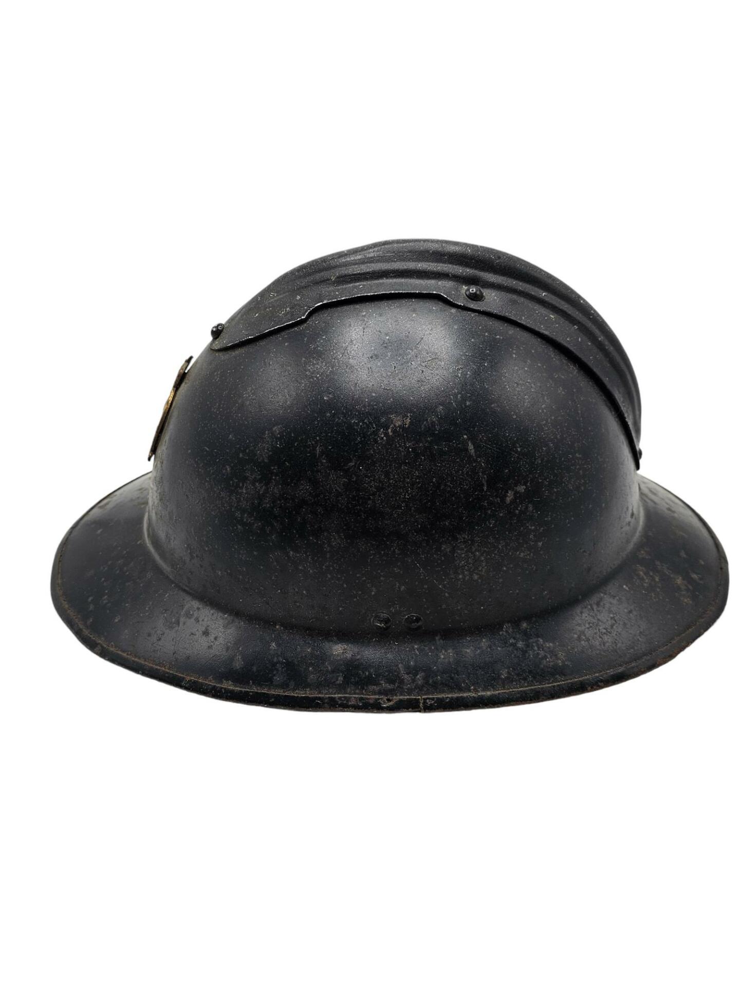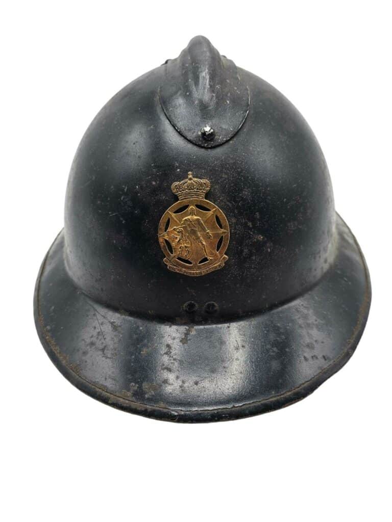 Belgische M31 Adrian helm Luchtverdediging. De helm is nog in een goede staat en is compleet met origineel binnenwerk en kinriem. De Helm is nog voorzien van het logo van DAP Impavidum Ferient Ruinae.