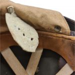 A Very nice 2nd model motor cyclists helmet. The helmet is in a very good condition with the original rough finish on the outer shell. Almost no damages. The liner of the helmet is still nice an souple but clearly used. The helmet has been found near Eindhoven. It has been marked 1944 so it probably was worn by one the liberators entering the Netherlands in 1944. Very nice helmet.