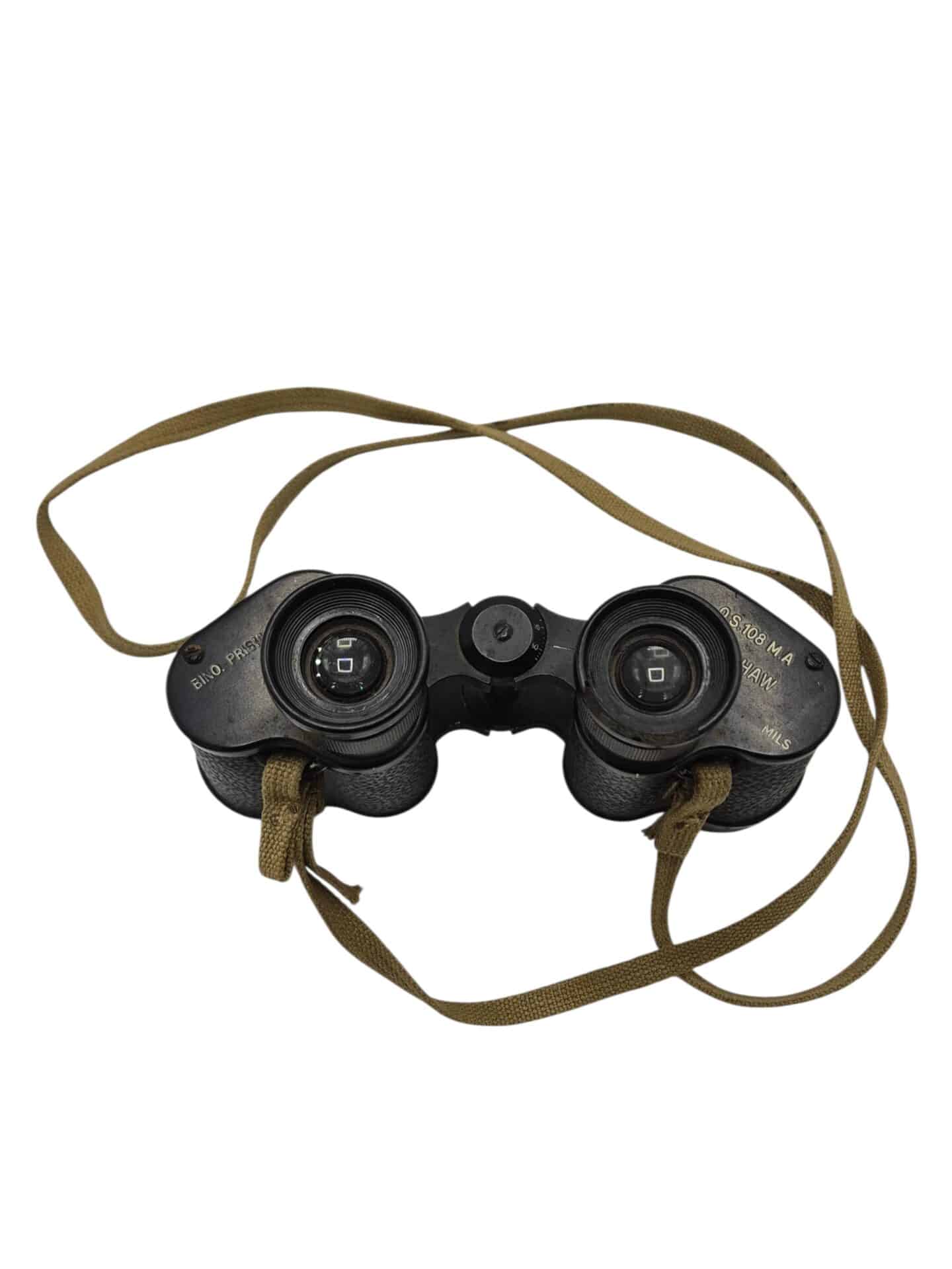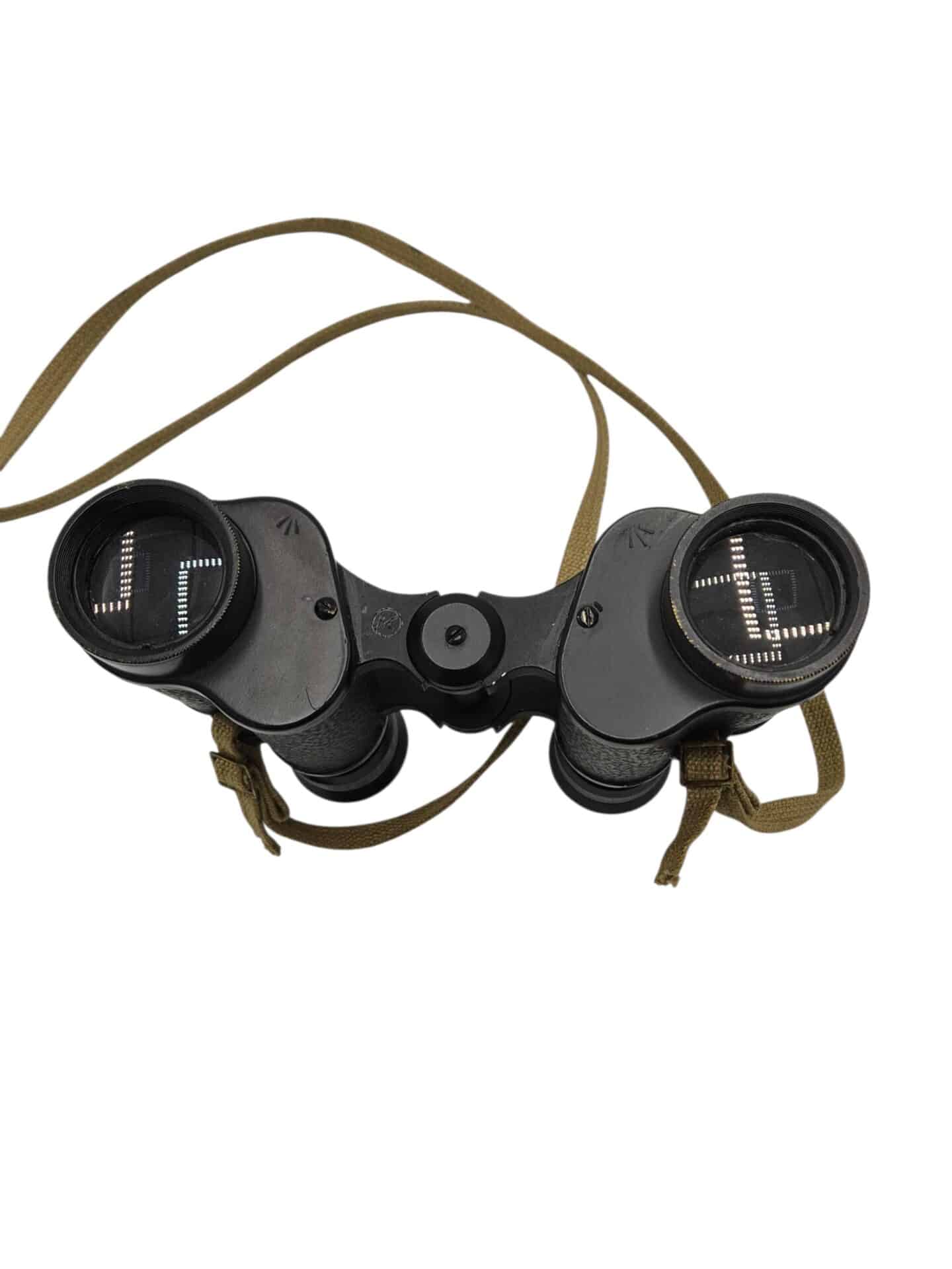 Nice broadarrow marked binoculars in very good condition. The binoculars have been used by the “koninklijke landmacht” after the war. You can see the KL stamp. The binoculars are still very clear and the range finding reticle is still intact. The binoculairs come with a correct webbing carrying strap.