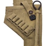 British tank crew holster, this holster is dated 1955 but it is still exactly the same model as the 2nd model used in the second world war. The holster is in a mint condition. It is complete with the closing strap and cleaning rod. The back is marked and dated 1955 with the broad arrow. Great to complete a WW2 tank crew overall or for reenactment.
