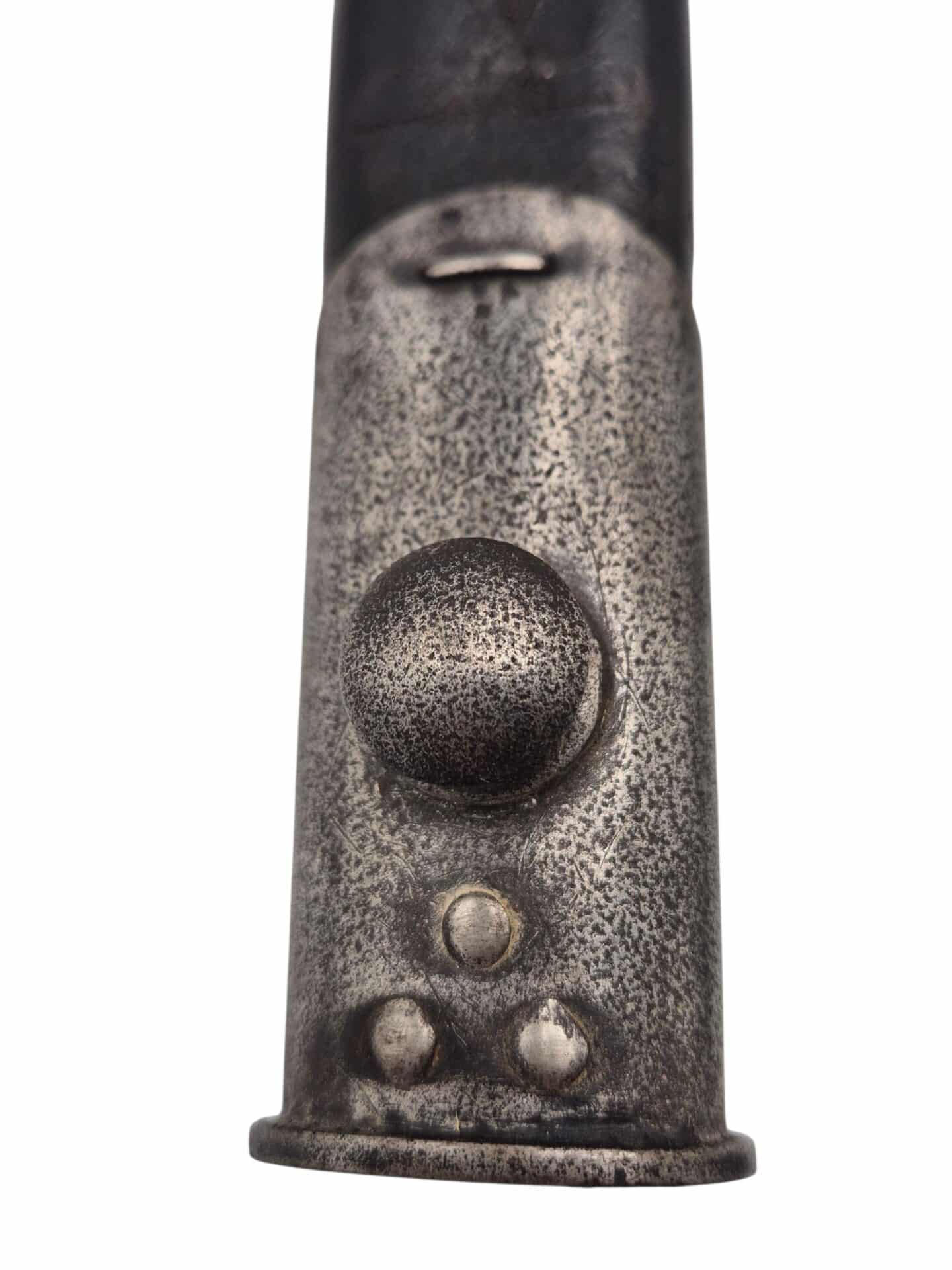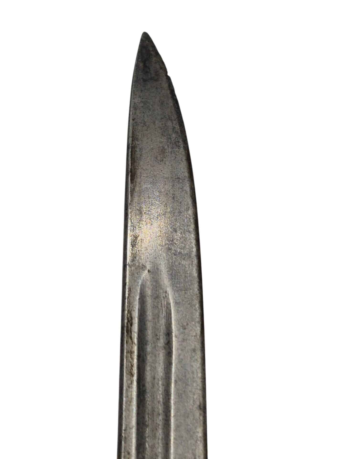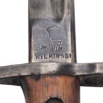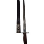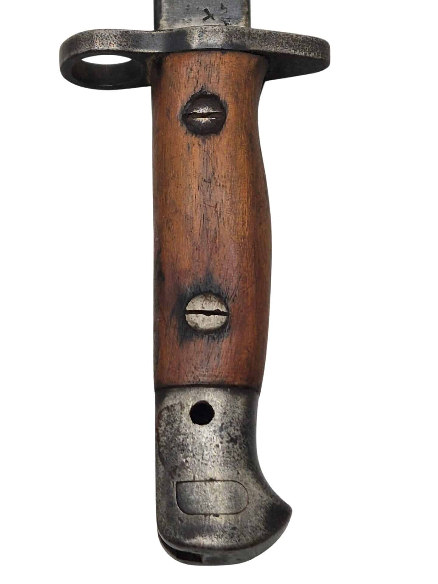 British Wilkinson 1907 pattern Enfield Bayonet scabbard and frog. The bayonet is in a nicely used condition. Nice markings on the blade. The leather of the scabbard is in very good condition.