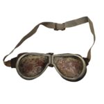 Nice motorcycle or tanker goggle set from the second world war! The set consists of a motorcycle dust goggle and the original metal case. The glasses are cloudy. The elastic band is still present. The metal case is in a used but good condition. On the front it is marked Francis and sons 1943 London.
