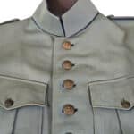Mooie buitenmodel jas van een sergeant der infanterie het jasje is in een goede staat en voorzien van al zijn originele knopen en emblemen. De rangschillen op de mouwen zijn nog in een zeer goede staat. De voorzijde van de jas heeft wat verkleuring, ontstaan door het zonlicht. Prima jasje om een mooie Sergeant der infanterie opstelling te maken.