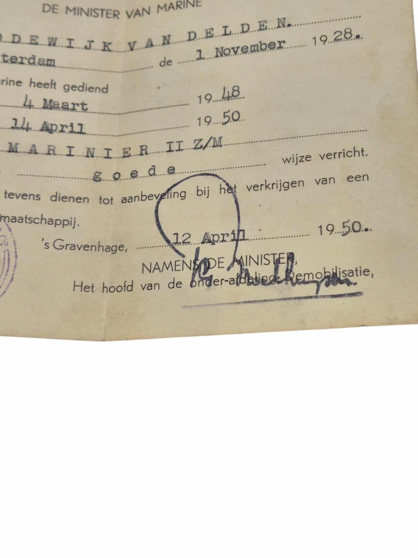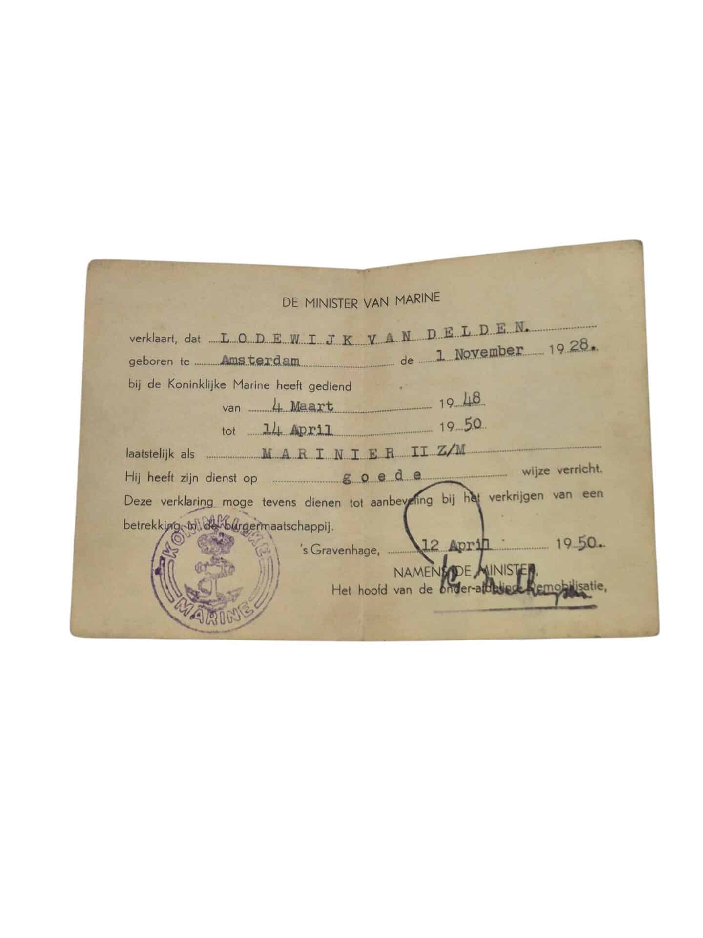 Getuigschrift van een marinier die in Indie dienst heeft gedaan. Leuk setje