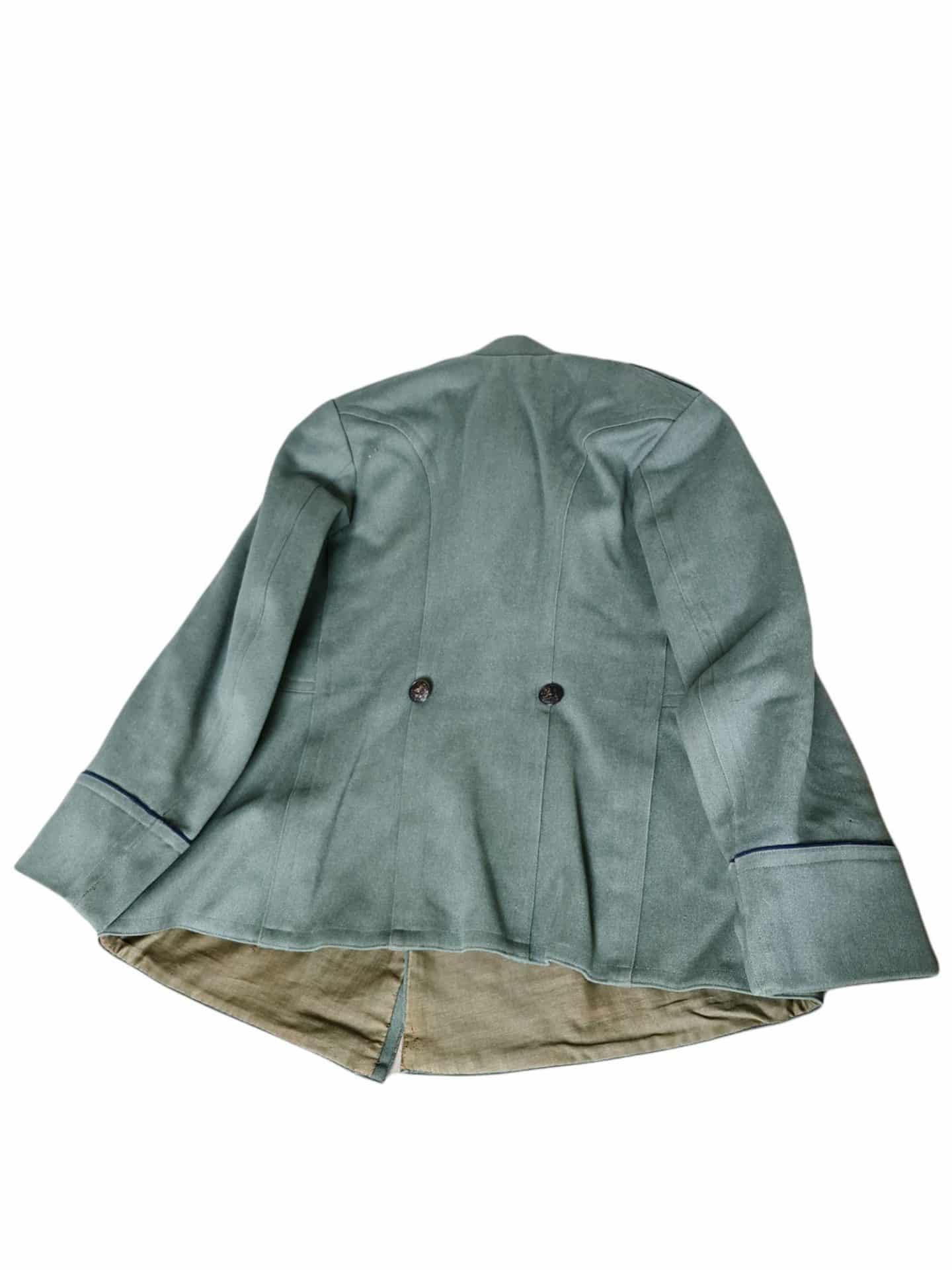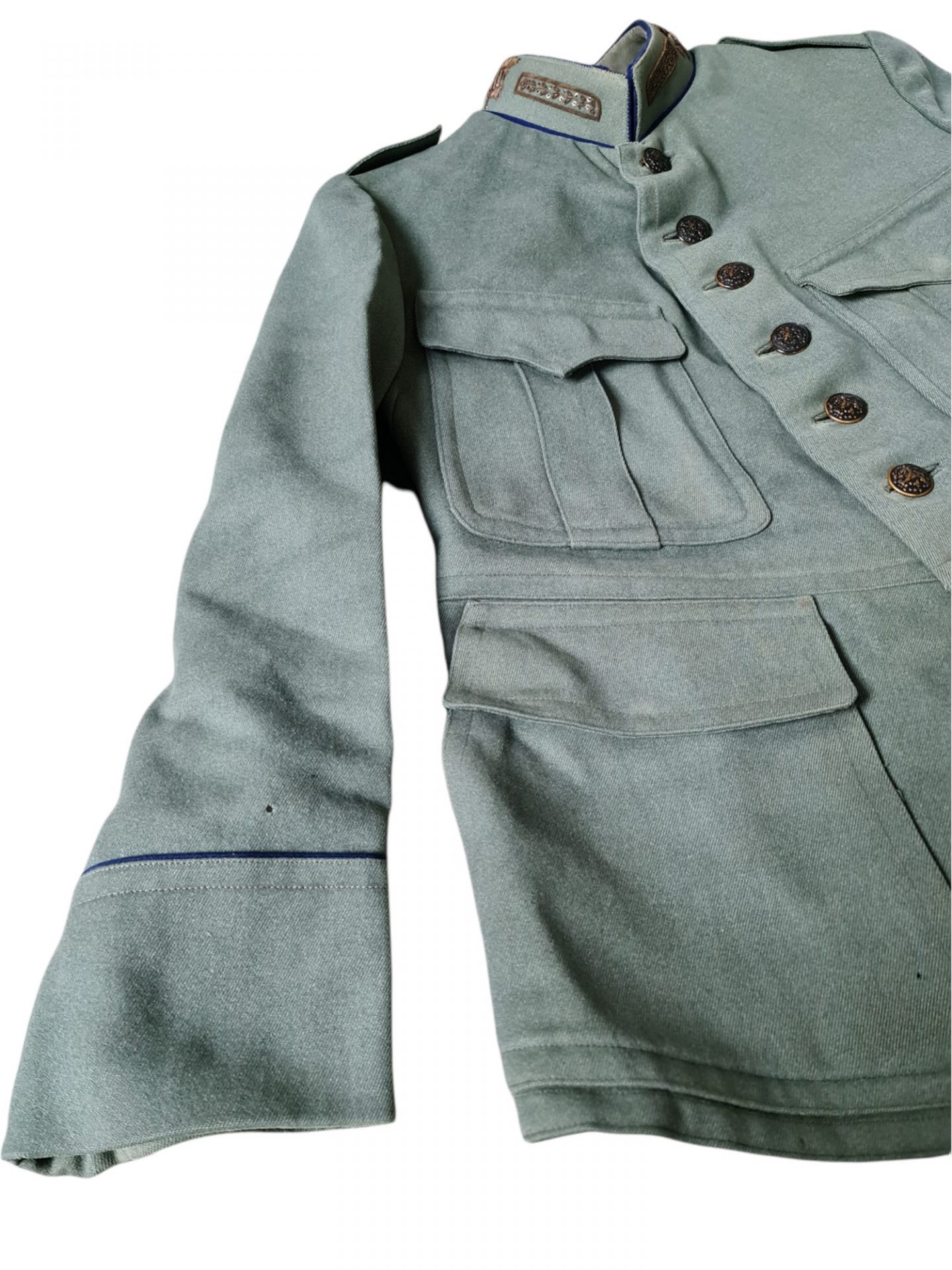 Zeer zeldzame veldgrijze uniform set van een opzichter der fortificatiën 3e klasse. De set bestaat uit een jas en een broek en is gemaakt door de bekende firma Blomjous in den Haag.  De set verkeerd in een goede staat en heeft slechte enkele gebruikerssporen. De emblemen zijn keurig ingeborduurd en verkeren nog in een zeer goede staat. Prachtige set van een niet veel voorkomend onderdeel!