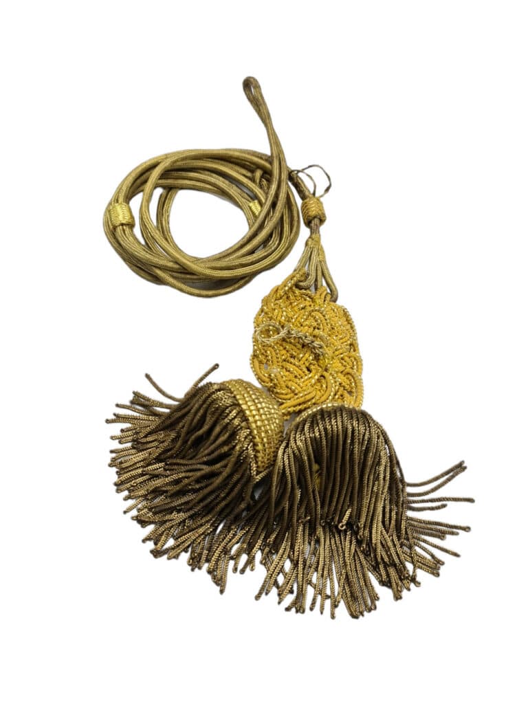 Zeer mooie fourragère voor een 2e luitenant van de jagers of grenadiers. De fourragère is nog in een uitmuntende staat. De lus is nog intact en alle schuif hulsjes zitten nog op de fourragère. 1 van de moeilijkere fourragères om te vinden. Prachtig display item maar ook prima om een ceremonieel uniform compleet mee te maken.