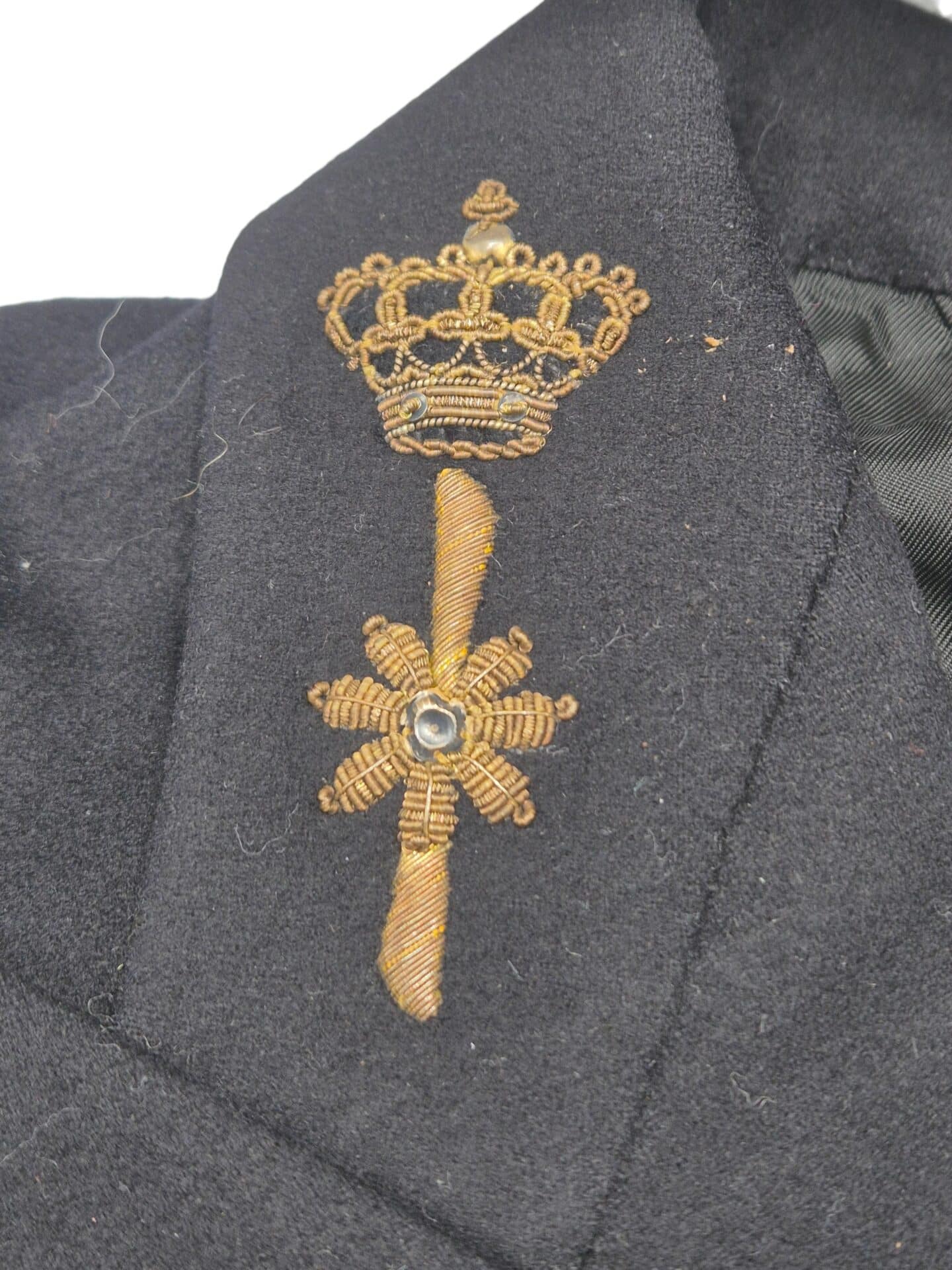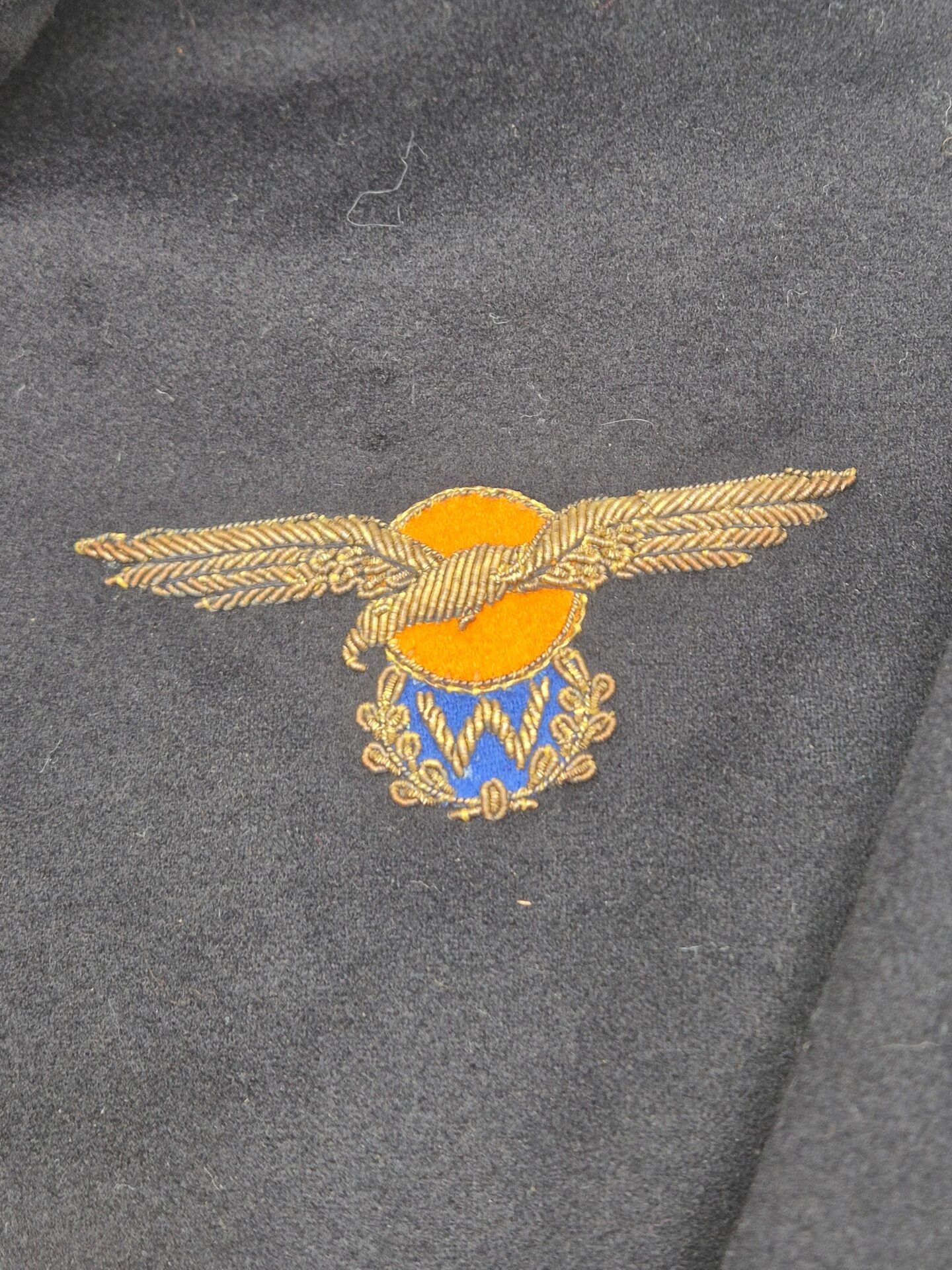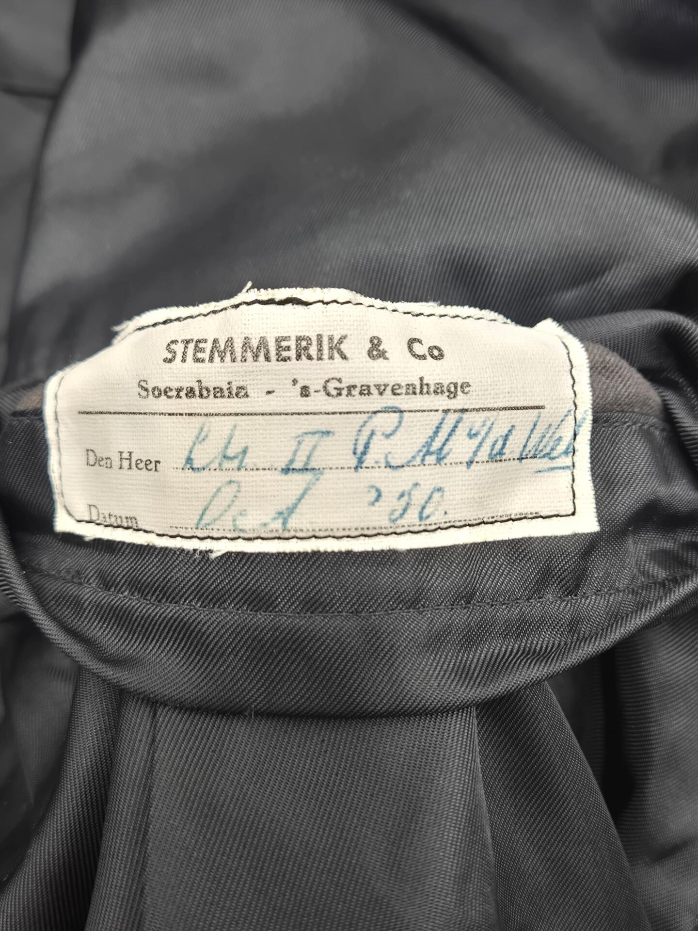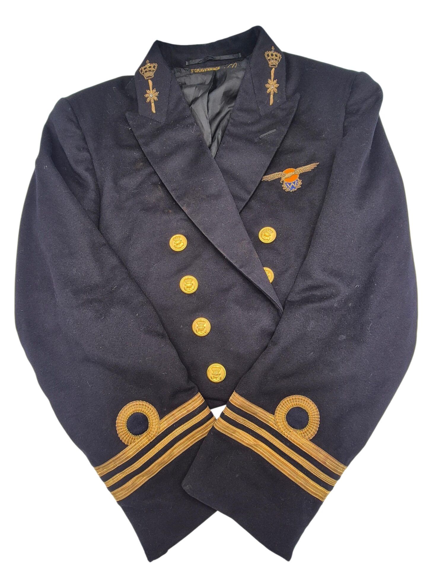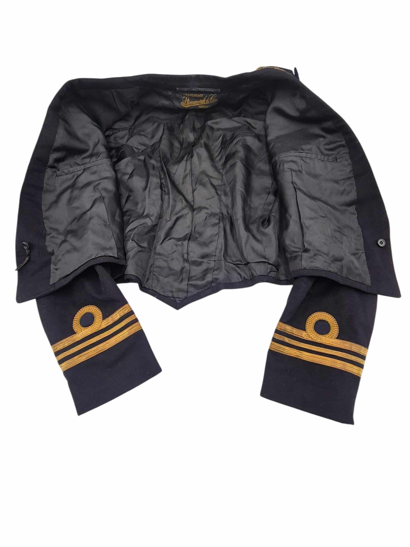 Prachtig en zeldzaam gala jasje van Luitenant vlieger PM Van Der Wel. Pieter van der Wel geboren 26 november 1918. Hij is in mei 1940 gevlucht naar Engeland en heeft gedurende de oorlog meegevochten in het 320e squadron RDNAS van de MLD in ballingschap in het Vereenigd Koninkrijk . Hij heeft hiervoor het kruis van verdienste en het vliegerkuis ontvangen, het oorlogsherinneringskruis met 2 gespen, 20 jaar officier. Hij heeft later in Indie nog gevlogen voor de LSK van de MLD in Mustang vliegtuigen. Het jasje is in een goed conditie met enkele kleine motschades. Het borduurwerk is in een prachtige conditie. Het waarnemer embleem is ook origineel in geborduurd en nog in een goede conditie, duidelijk zichtbaar is de kenmerkende “gier” met kromme snavel die in Indie werd gebruikt. Het jasje is mooi op naam en gedateerd October 1950, hij heeft bij de laatste Indische jachtvliegers meegevlogen, hier is ook een artikel over terug te vinden op de site van het NMM. Het jasje is ook voorzien van een label van de kleermaker Stemmerik en Co ‘s-Gravenhage en Soerabaja. Prachtig jasje waar nog genoeg over is terug te vinden.