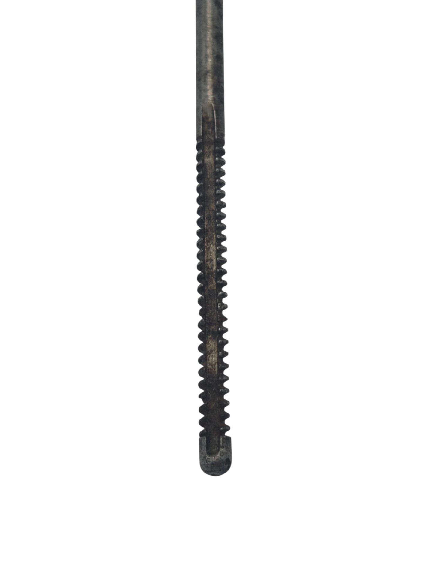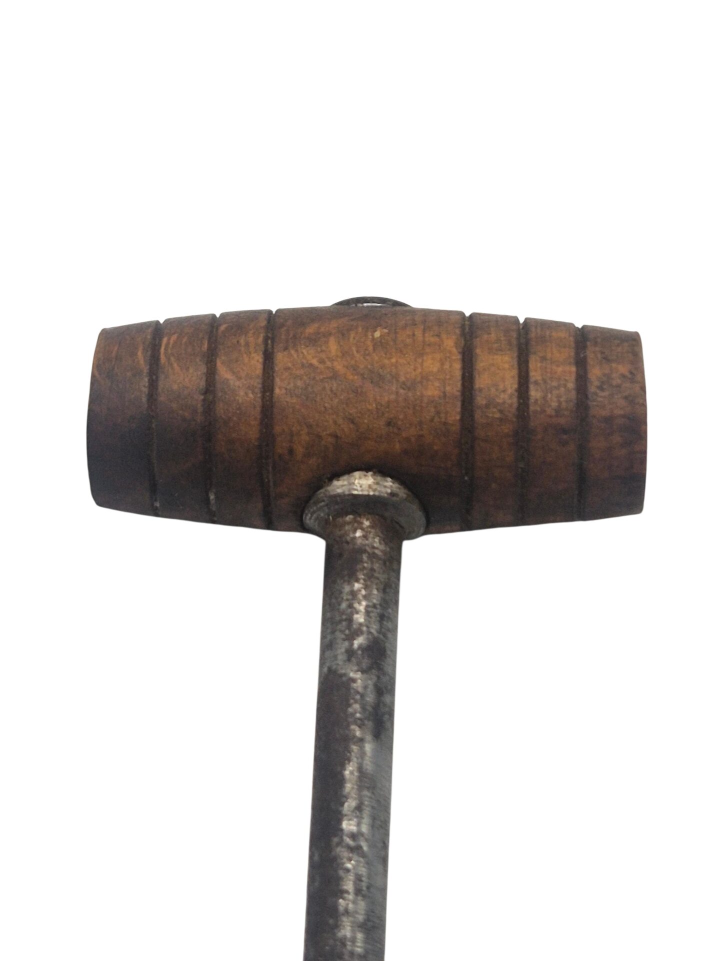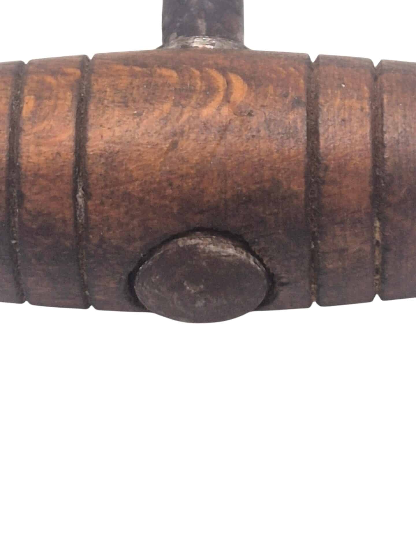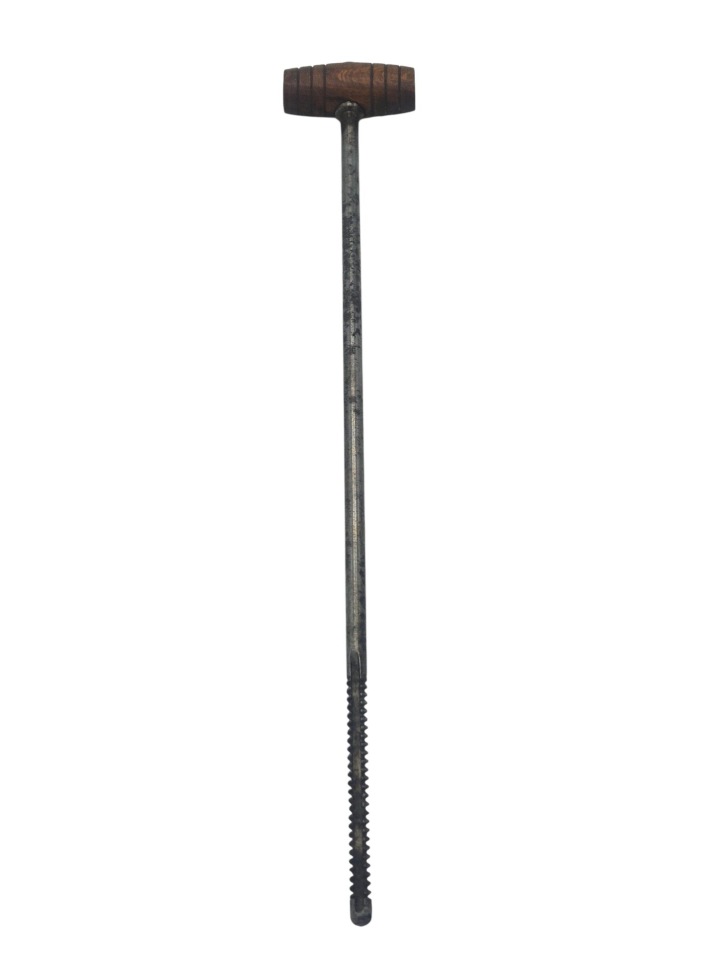 This is an original WW1 Artillery Luger Cleaning Rod. The top of the rod is wood with 3 lines indented on each side the wood still is in a very good condition. The metal rod has a circular pattern 2 inches up from the bottom of the top. There is some minor rust on the rod. Very hard to find original cleaning rod.