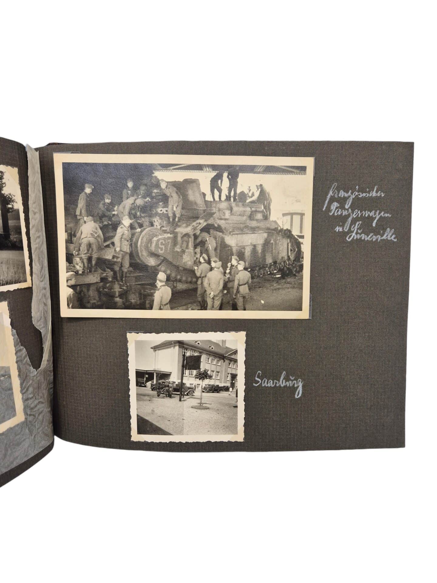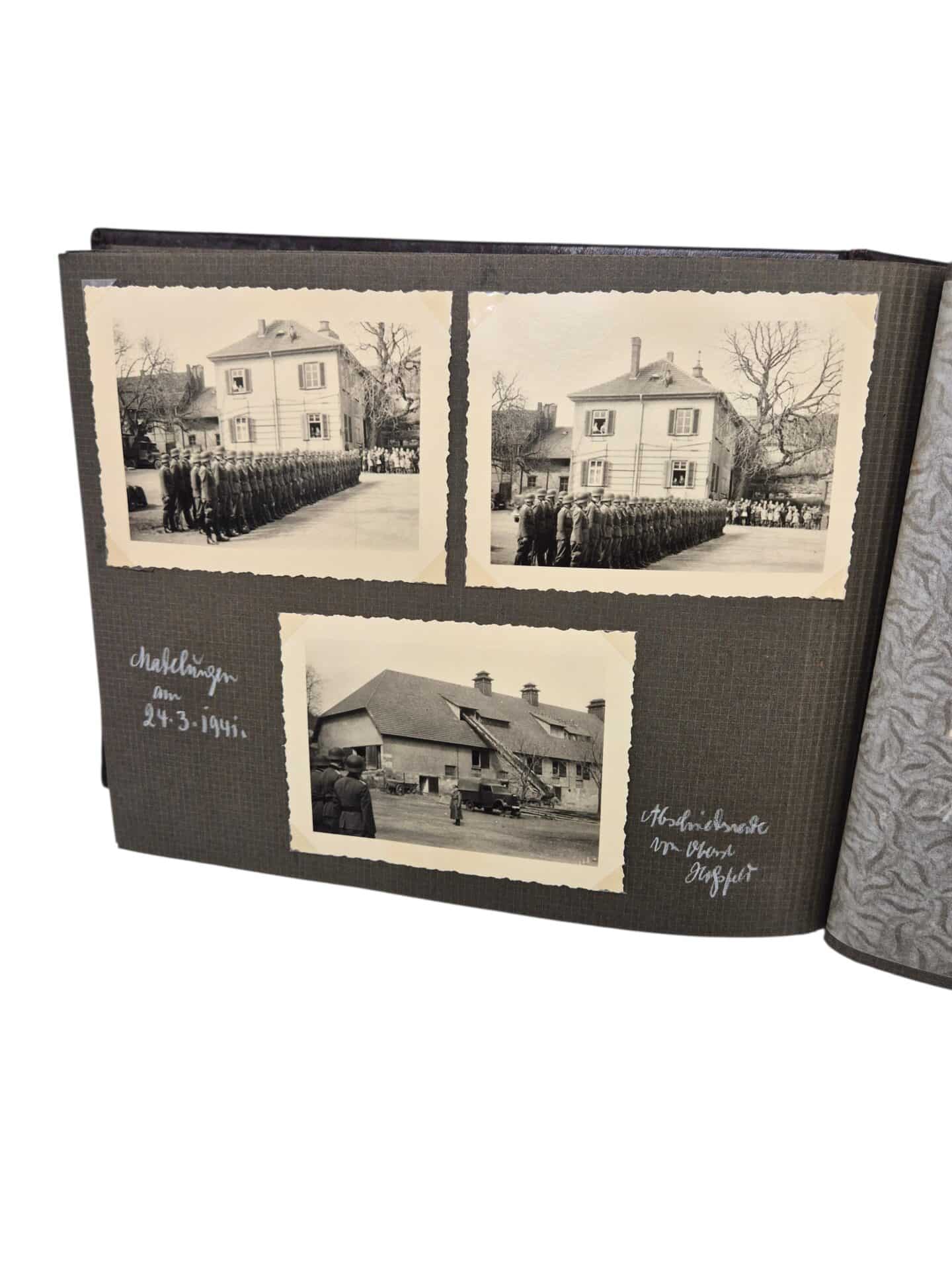 A german photoalbum in good condition containing 161 mainly military photo’s. A lot of photo’s with soldiers, pak, pow etc. Very interesting allbum from august 1939 to februari 1941, blitzkrieg Belgium and France. The album is complete.