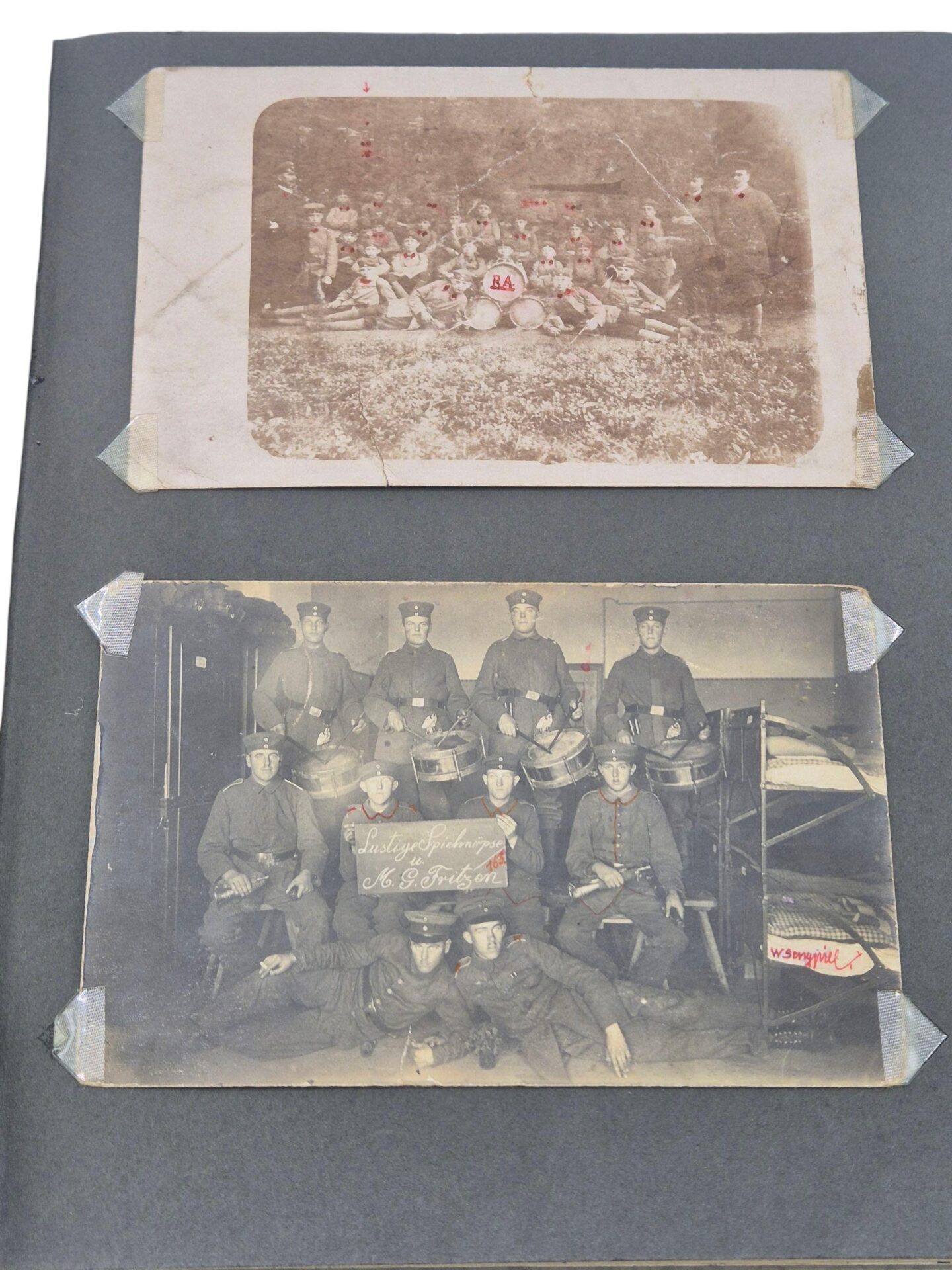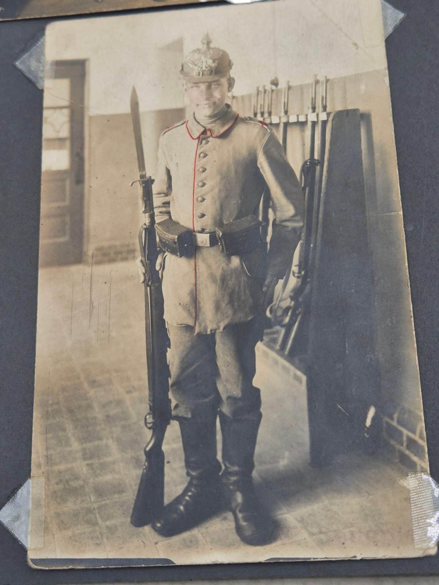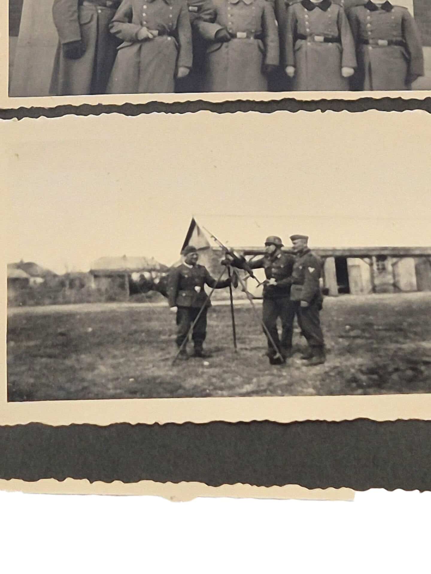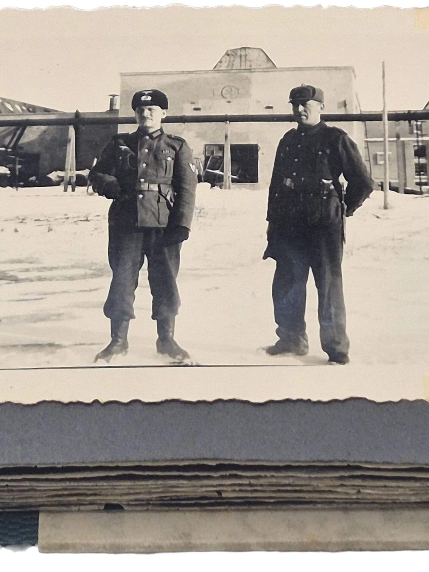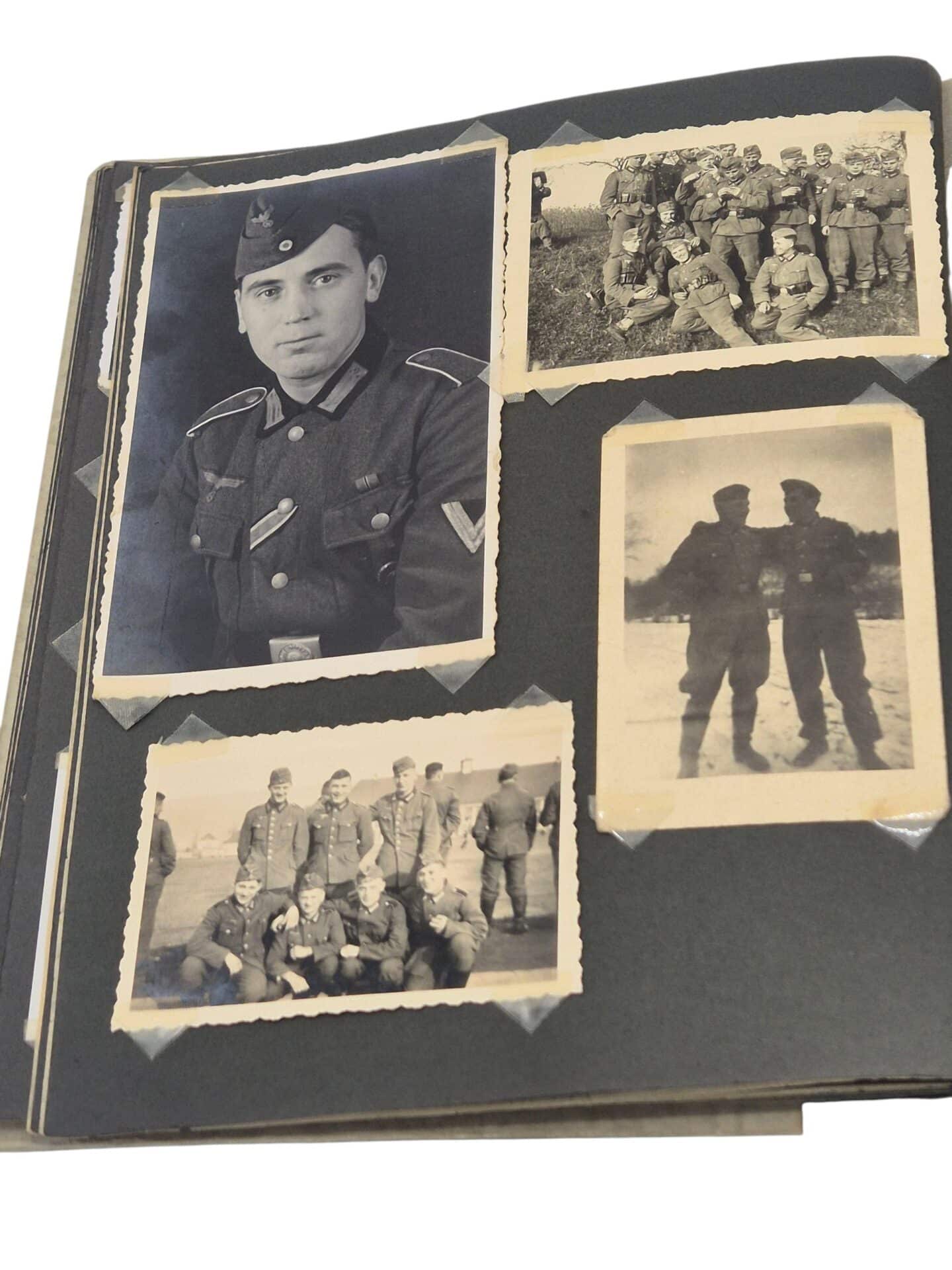German WW2 photoalbum consisting of 161 pictures, the album is almost complete, some missing pictures. A lof of military pictures. The album starts with some WW1 pictures with pickelhaube. And conitnues with the WW2 in the rest of the album. Guard duty in snowy conditions. Military training, free time, burial etc.