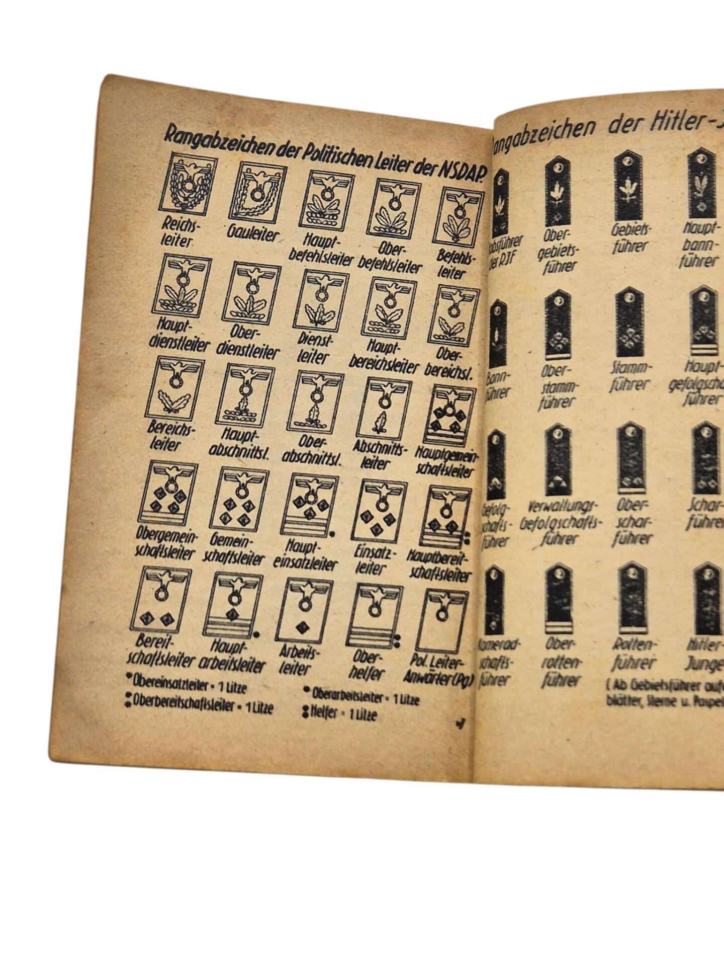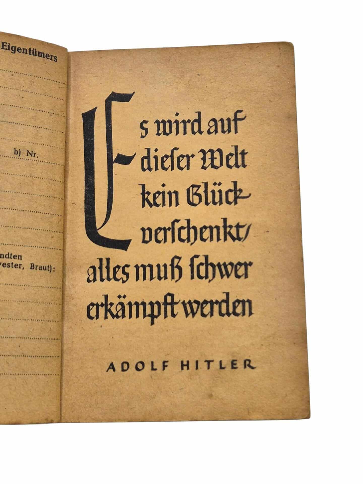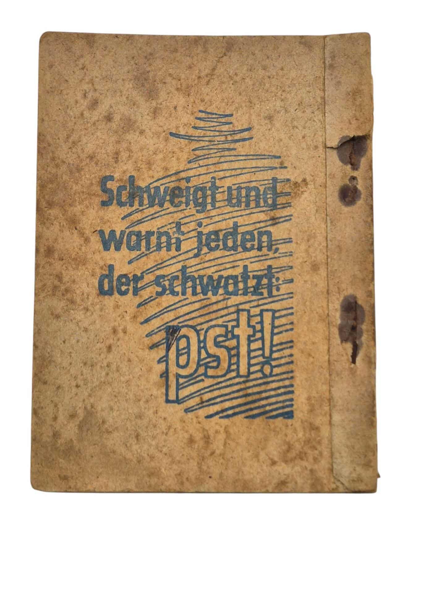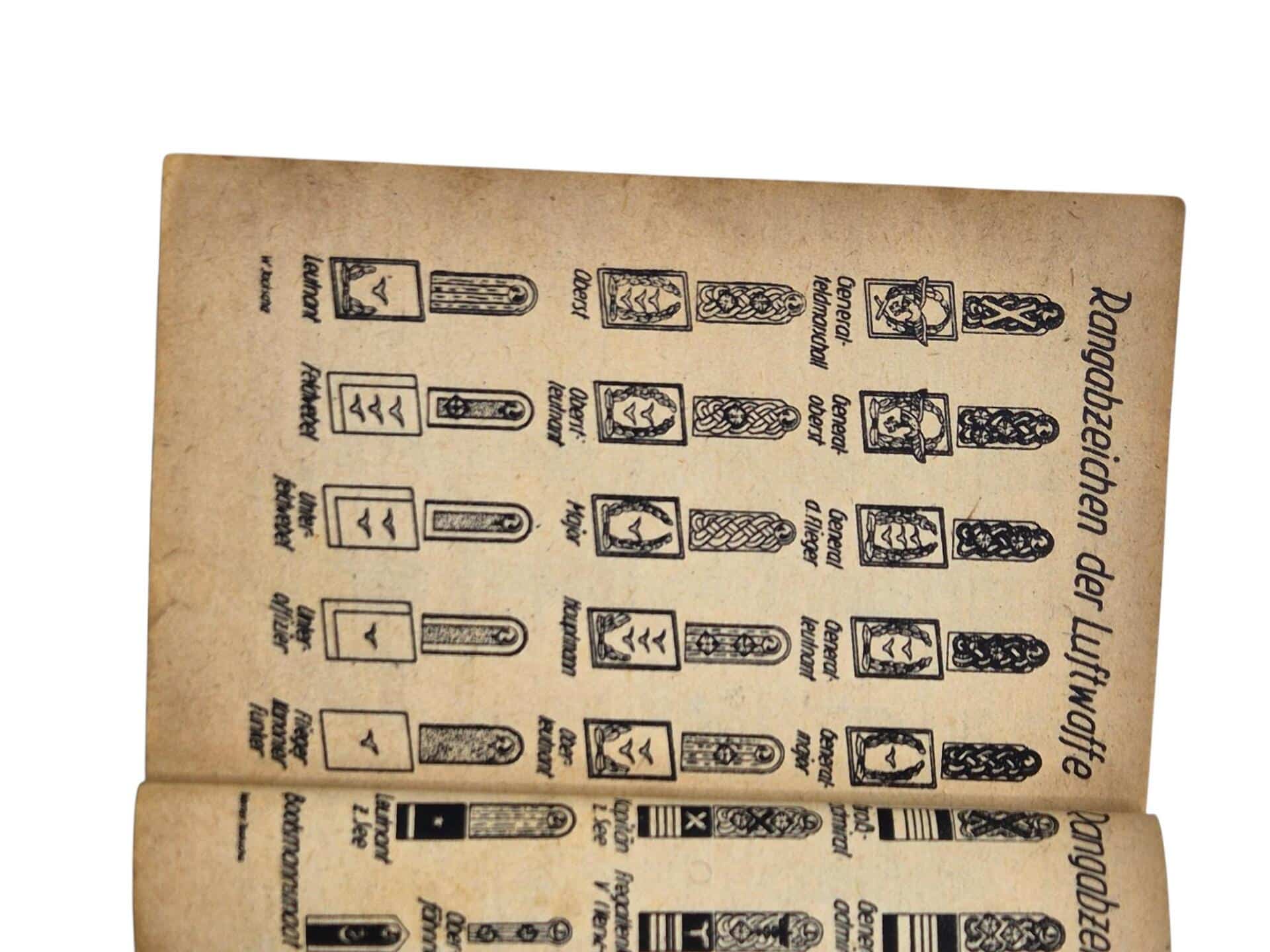 Hard to find German pocket agenda. Dated 1945 with all kind of survival information and all the ranks of the german army. Nice little display piece or personal item for a German WW2 display