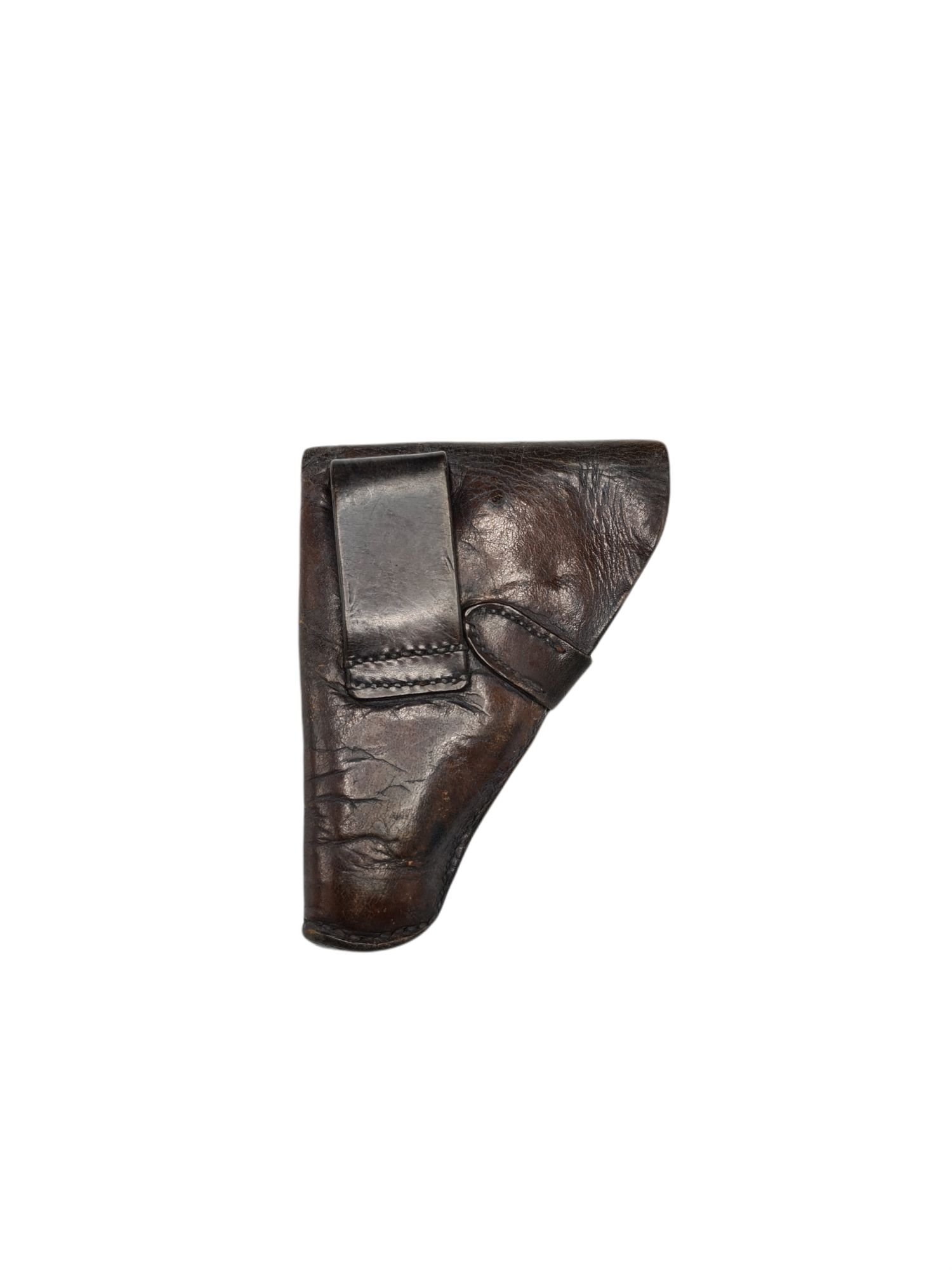 German officer pistol holster. The holster is still in a very nice condition and visibly carried a gun due to the imprints in the leather. The loop on the back and the closing strip are still in good condition. Nice holster to complete a german officer.
