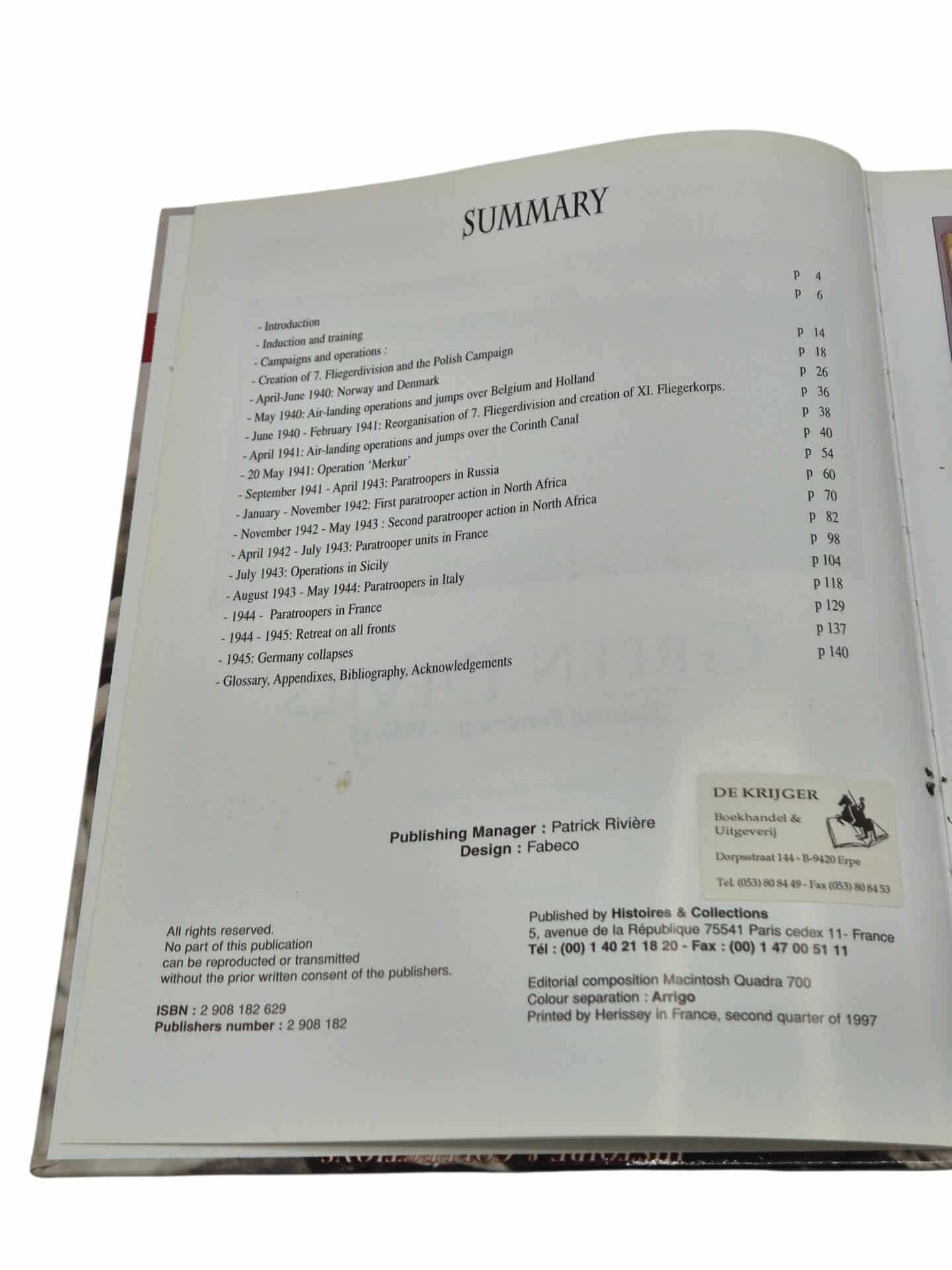 “Green Devils: German Paratroopers 1939-1945 by Jean-Yves Nasse is a vintage first edition hardcover book published in 1997 by Histoire ET Collections. The narrative type is nonfiction, with a focus on the history of German paratroopers during World War II. Illustrated by the author, this picture book is intended for adult audiences and provides insight into the military aspects of the war. The book is in English and offers a unique perspective on the actions of German paratroopers throughout the conflict.” Second hand book. The book is still in a very good condition.