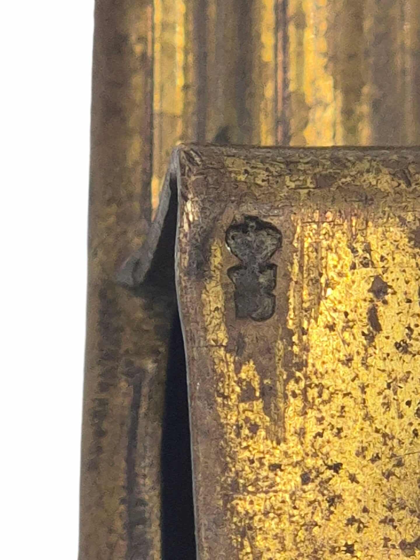 In een goede staat verkerende messing loopbeschermer van het Nederlandse Hembrug M.95 geweer. Op de zijkant is nog het keurmeesters stempel te zien, een gekroonde B.