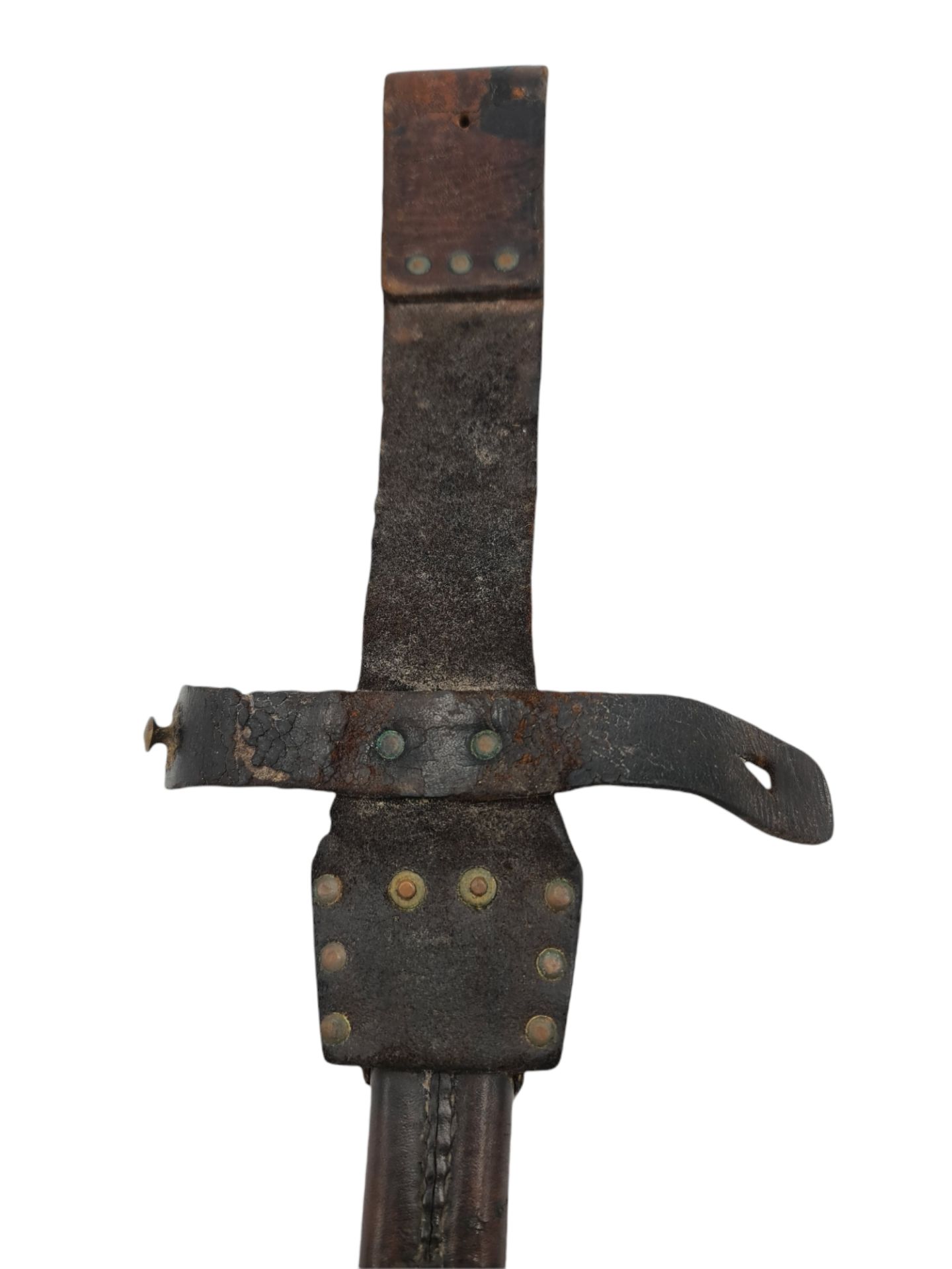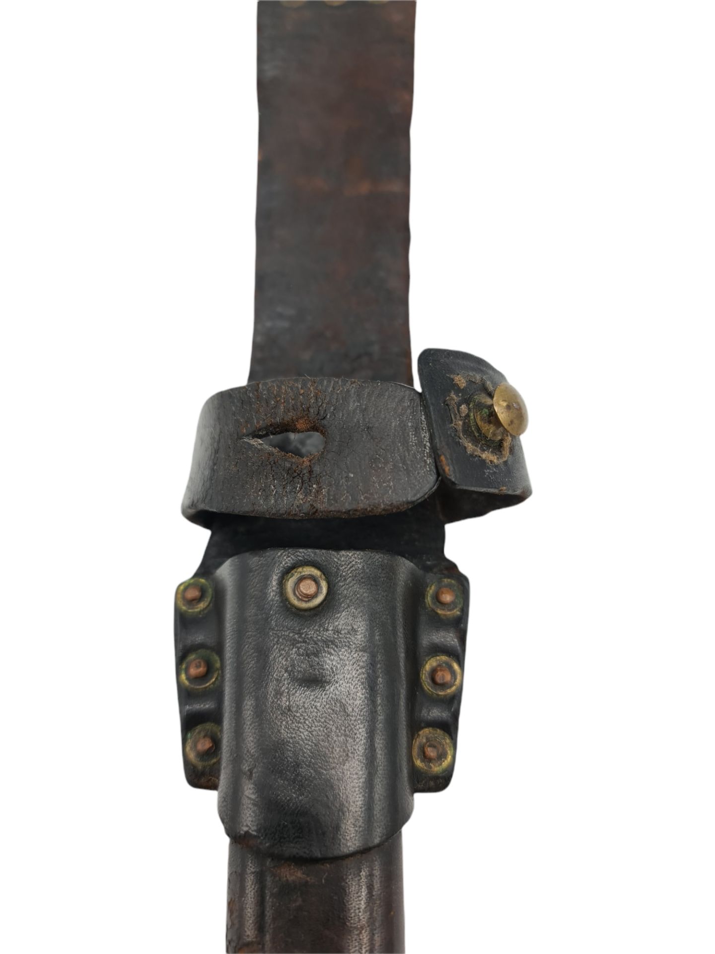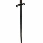 Prachtige Nederlandse Hembrug M.95 bajonet van het Korps Mariniers en de marine. De bajonet voor het Hembrug geweer voor het Korps Mariniers en de marine zijn g0ed te herkennen aan de afwijkende krul, de schroef om de houten handvatten los te maken en de afwijkende schede. De handvatten konden los gemaakt worden zodat het onderhoud vanwege het zoute zeewater wat makkelijker werd. De vroege aanmaken werden in Oostenrijk besteld, samen met de aangekochte M.95 geweren. Latere aanmaken werden door de Artillerie Inrichtingen vervaardigd. Dit exemplaar is dus een vroege aanschaf. De bajonet met krul is netjes gemerkt met OEWG, de Österreichische Waffenfabrik Gesellschaft. En is nog in een zeer mooie geblauwde staat. Deze Oostenrijkse leverancier leverde de bajonetten bij het Steyr M.95 geweer. Hieronder staat het wapennummer, M 1960. Aan de andere zijde staat het keurmakers stempel met eronder het serienummer, 6343. De kenmerkende schede verkeerd nog in een mooie bruine staat. Het sluitlusje is niet gescheurd en verkeerd nog in een goede soepele staat. Een prachtige zeldzame M.95 bajonet voor het Korps Mariniers en de Koninklijke Marine!