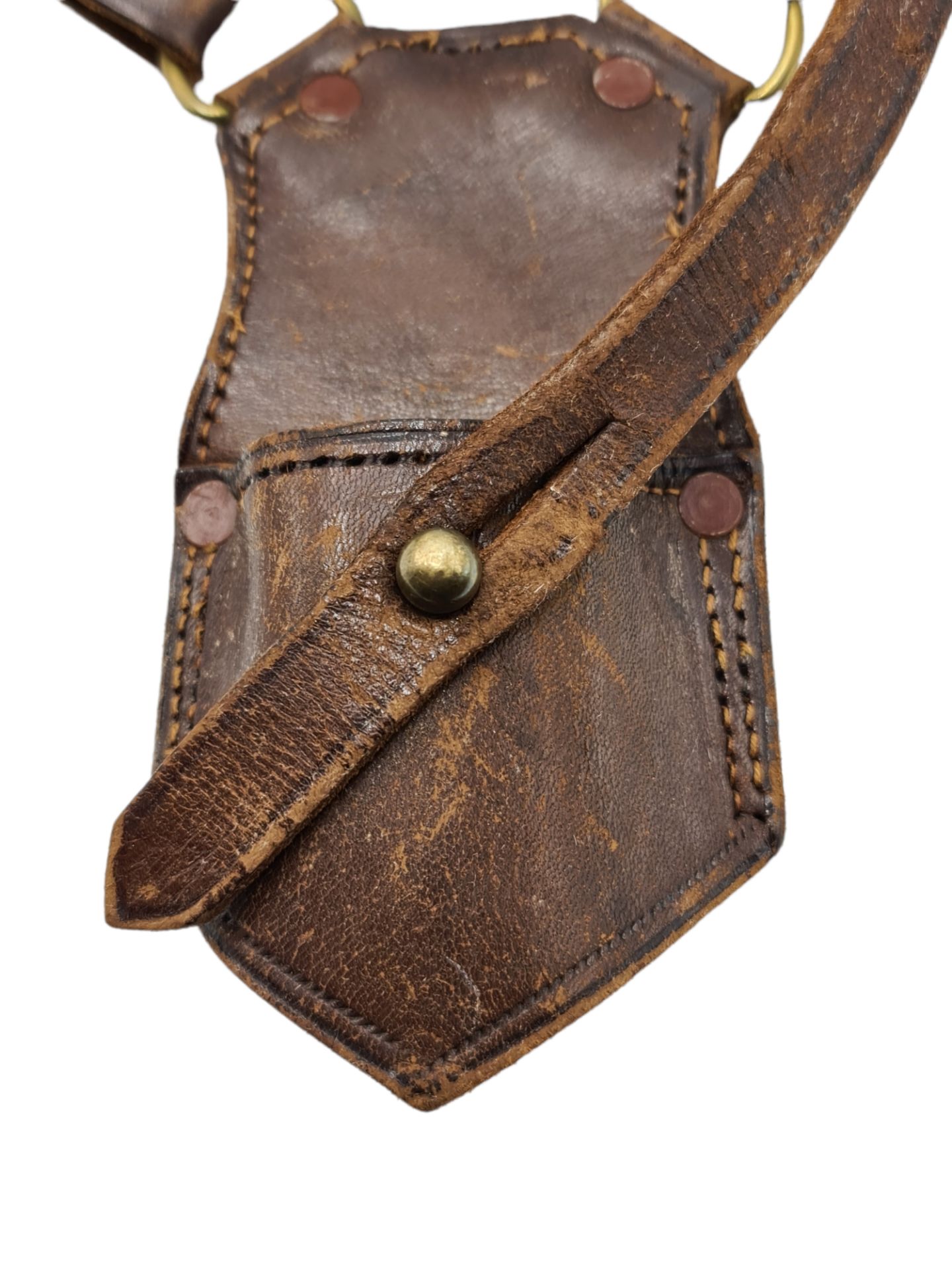 Nederlandse klewang of stormdolk houder. De houder is gemaakt van bruin leder en verkeerd nog in een soepele staat. De hanger kan aan elke Sam Brown riem gehangen worden.