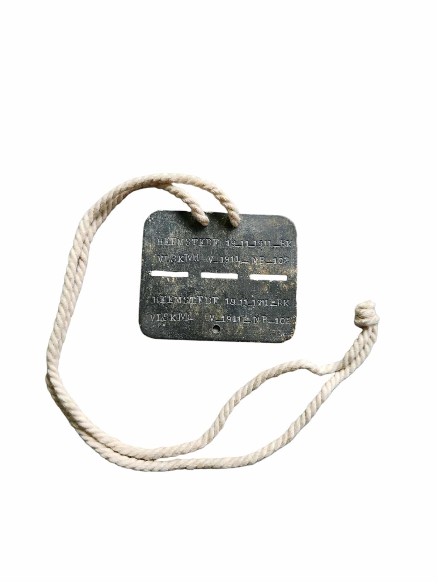 Vooroorlogs Nederlands herkenningsplaatje van een militair dienend in het vrijwillige landstorm korps motordienst. Het plaatje verkeerd in een goede staat en is compleet met het originele draagkoord.