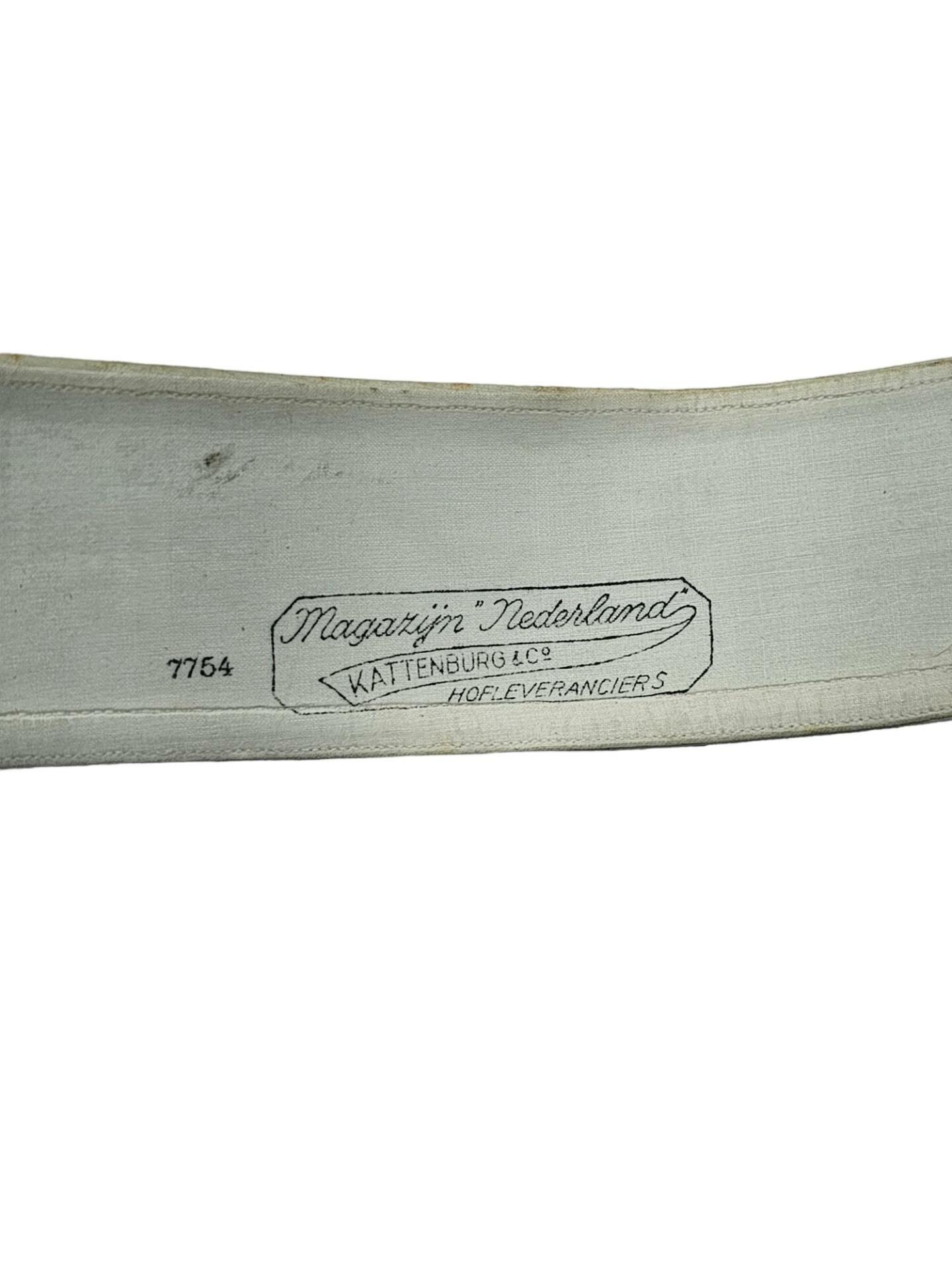 Wit inzetkraagje voor de Nederlandse uniformen. Het kraagje is mooi gemarkeerd Kattenburg en co hofleveranciers en zo te zien nooit gebruikt en in een zeer mooie opgestijfde staat om een kraag van een uniform te verstevigen . Het kraagje kan in een uniform gezet worden door middel van de haakjes in de kraag en creëerde zo wat extra draagcomfort en uitstraling.