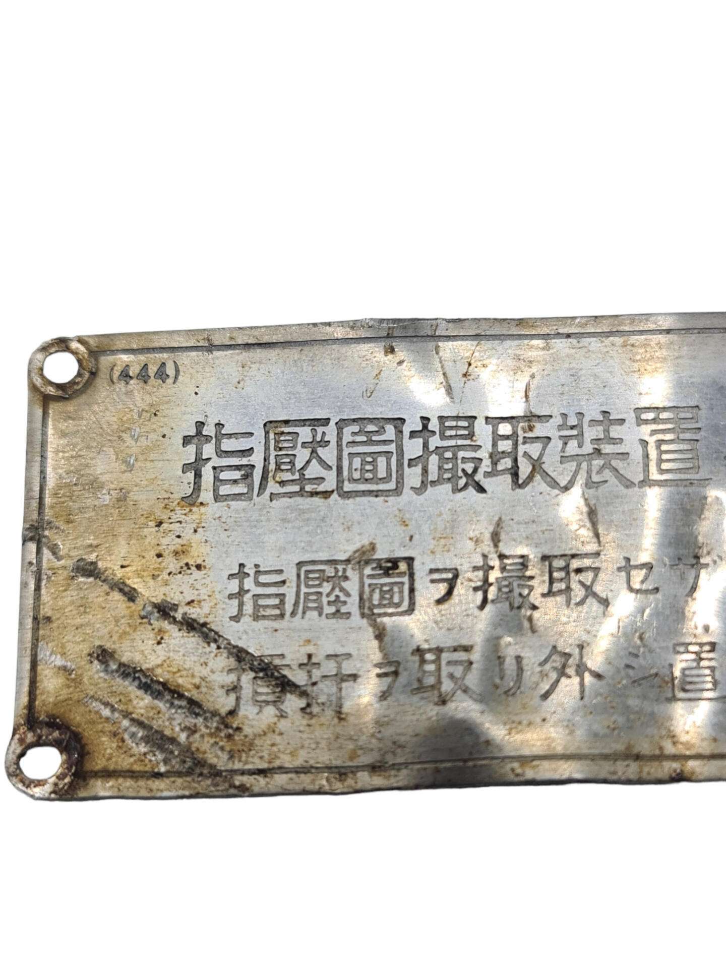 Japans Wo2 voertuigplaatje dat op een voertuig of geschut heeft gezeten. Waarschijnlijk als trofee mee naar huis meegenomen. Leuk Wo2 bringback item.