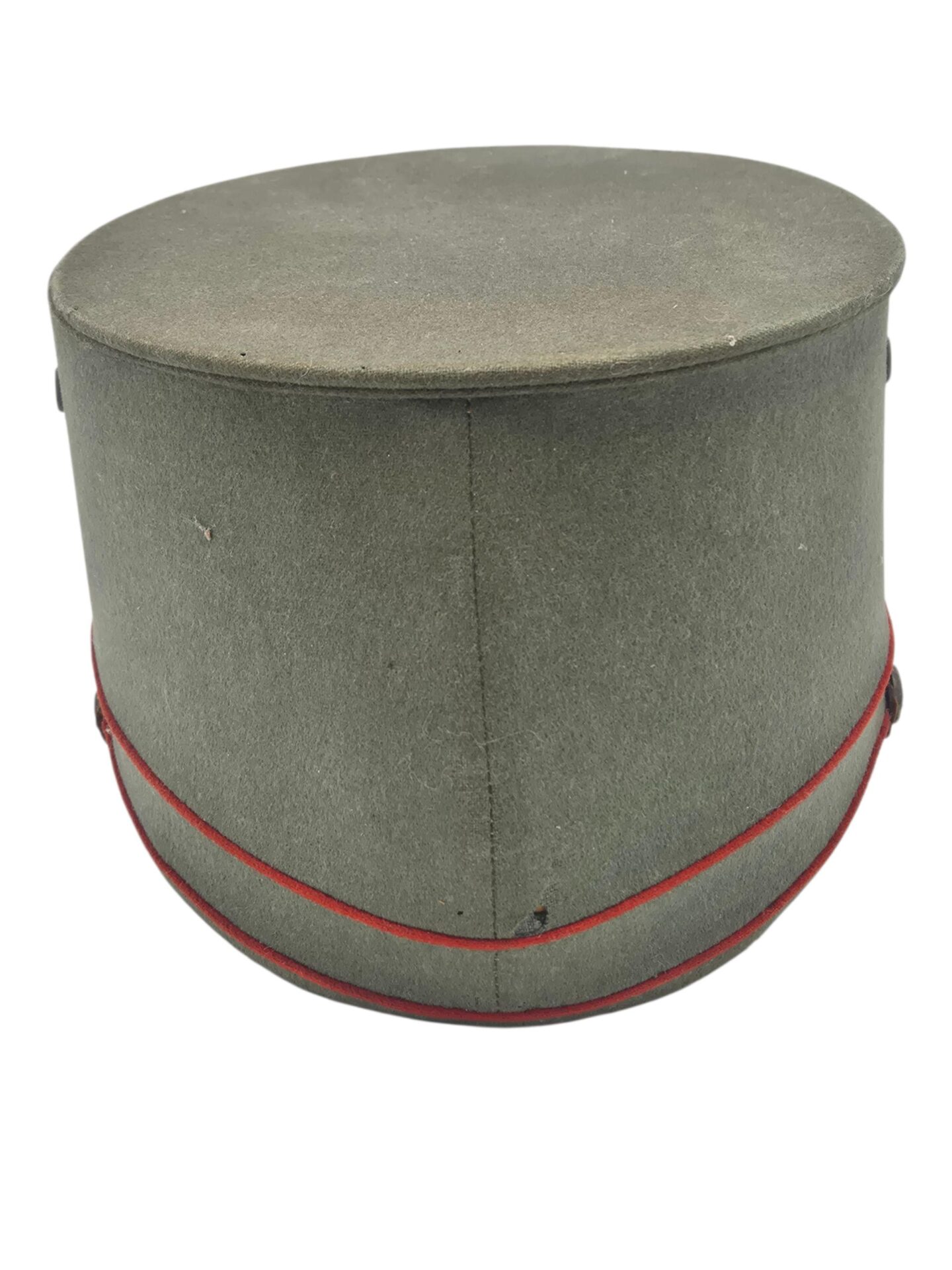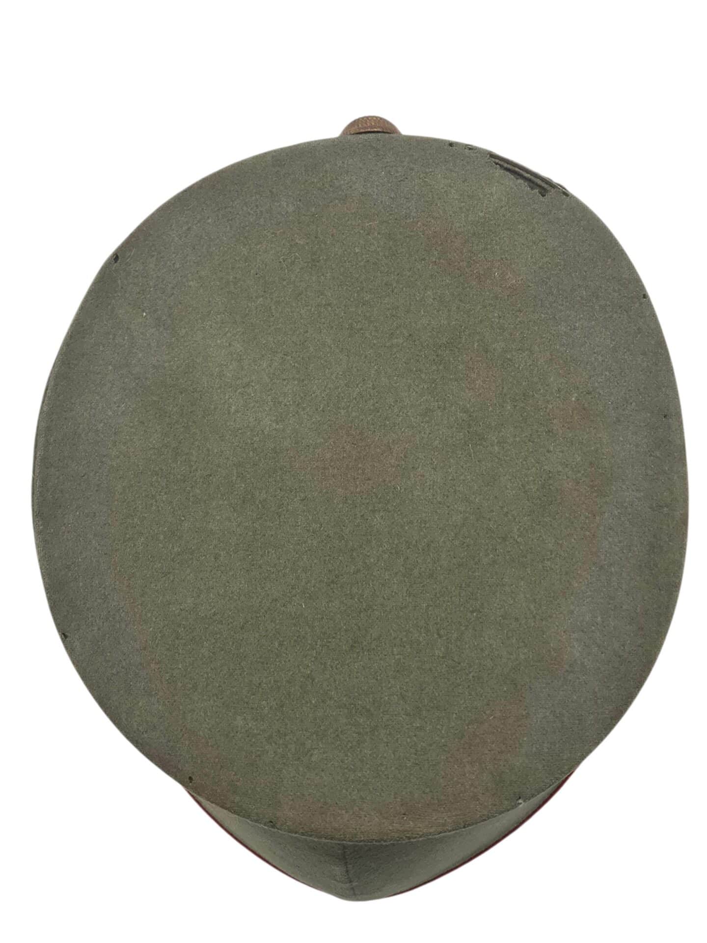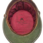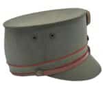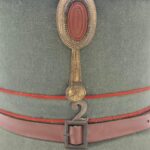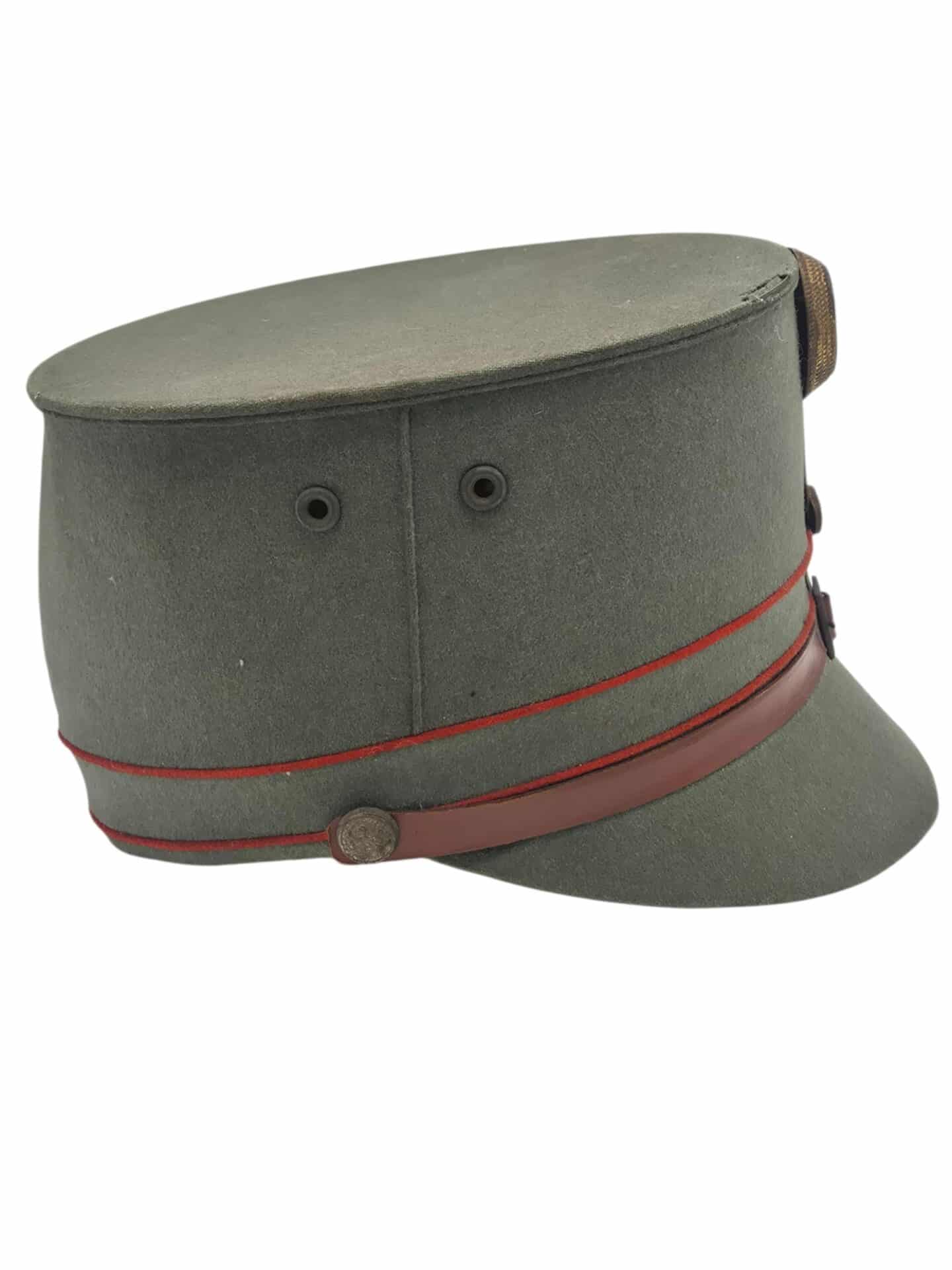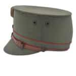 Een kepie gedragen door een manschap artillerie in het Nederlandse leger voor 1940. De kepie is gemaakt van geschoren wol en verkeerd nog in een redelijke staat. De kepie heeft helaas wat motvraat op de klep en aan de bovenrand. De stormriem is nog in een goede conditie in een mooie lichtbruine kleur. Voorop de kepie zit de blikken kokarde, horende bij de rang van soldaat en korporaal. De kepie is voorzien van rode biezen en het getal 2. De binnenzijde van de kepie heeft wat slijtage aan de randen maar is nog in een redelijk goede staat en maker gemarkeerd Blomjous Den Haag.