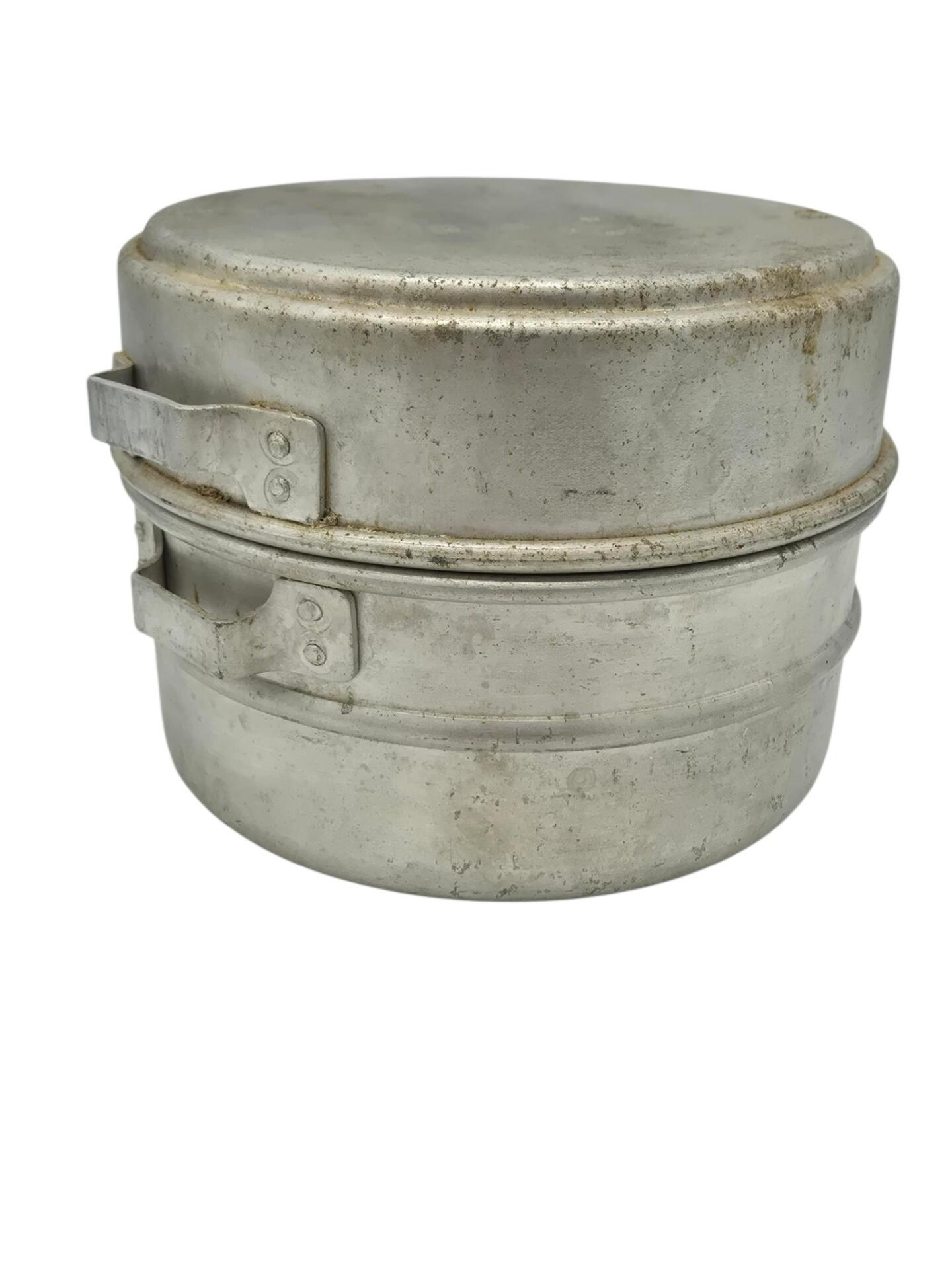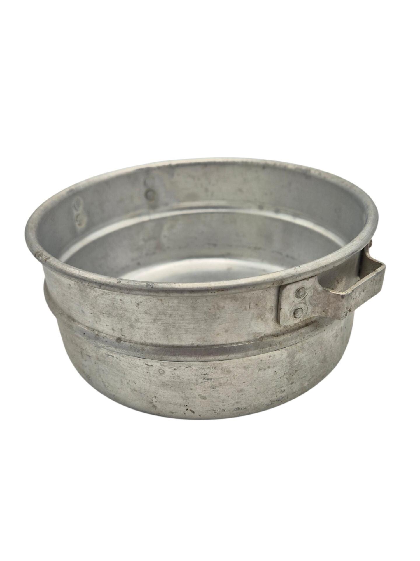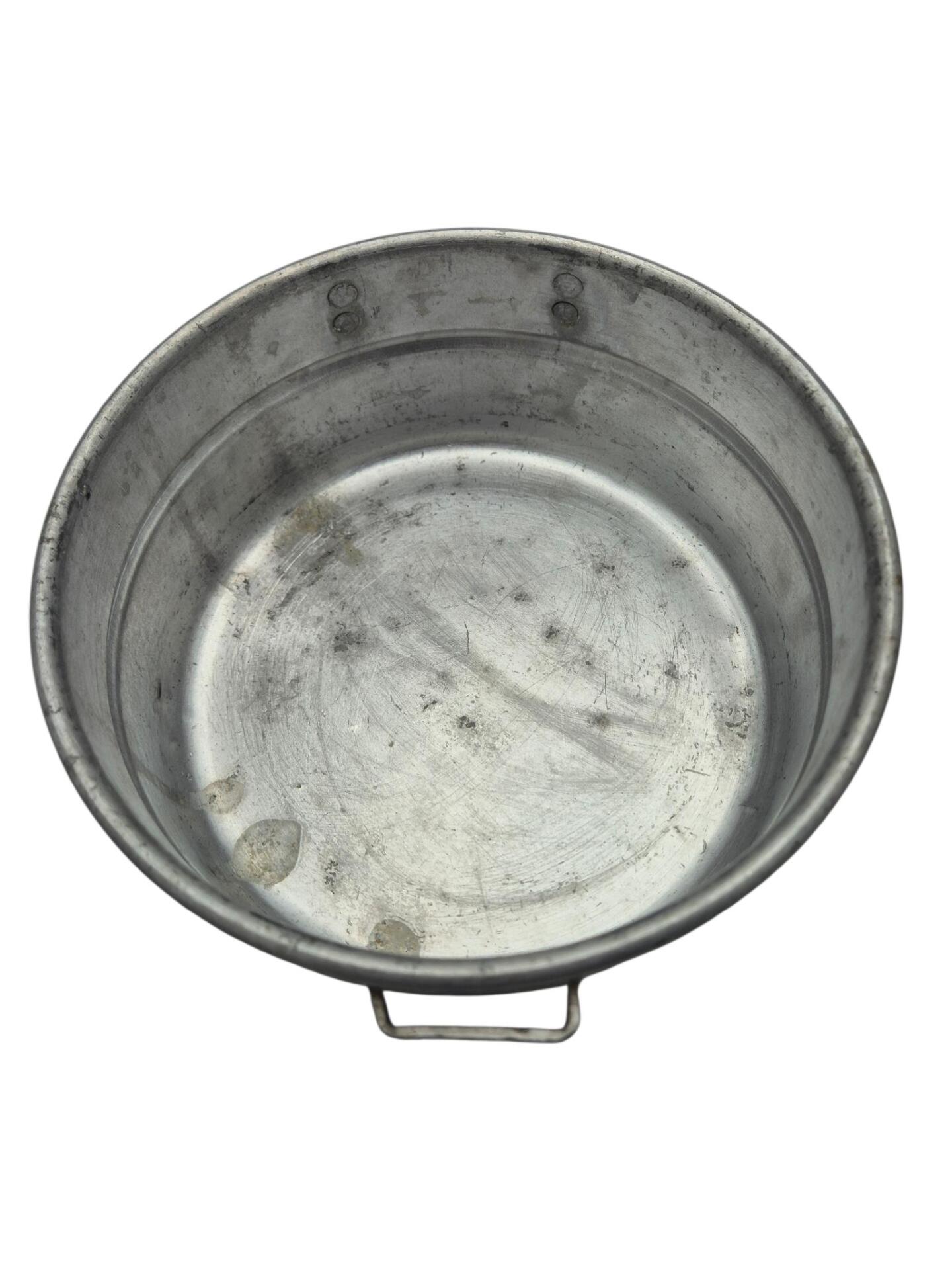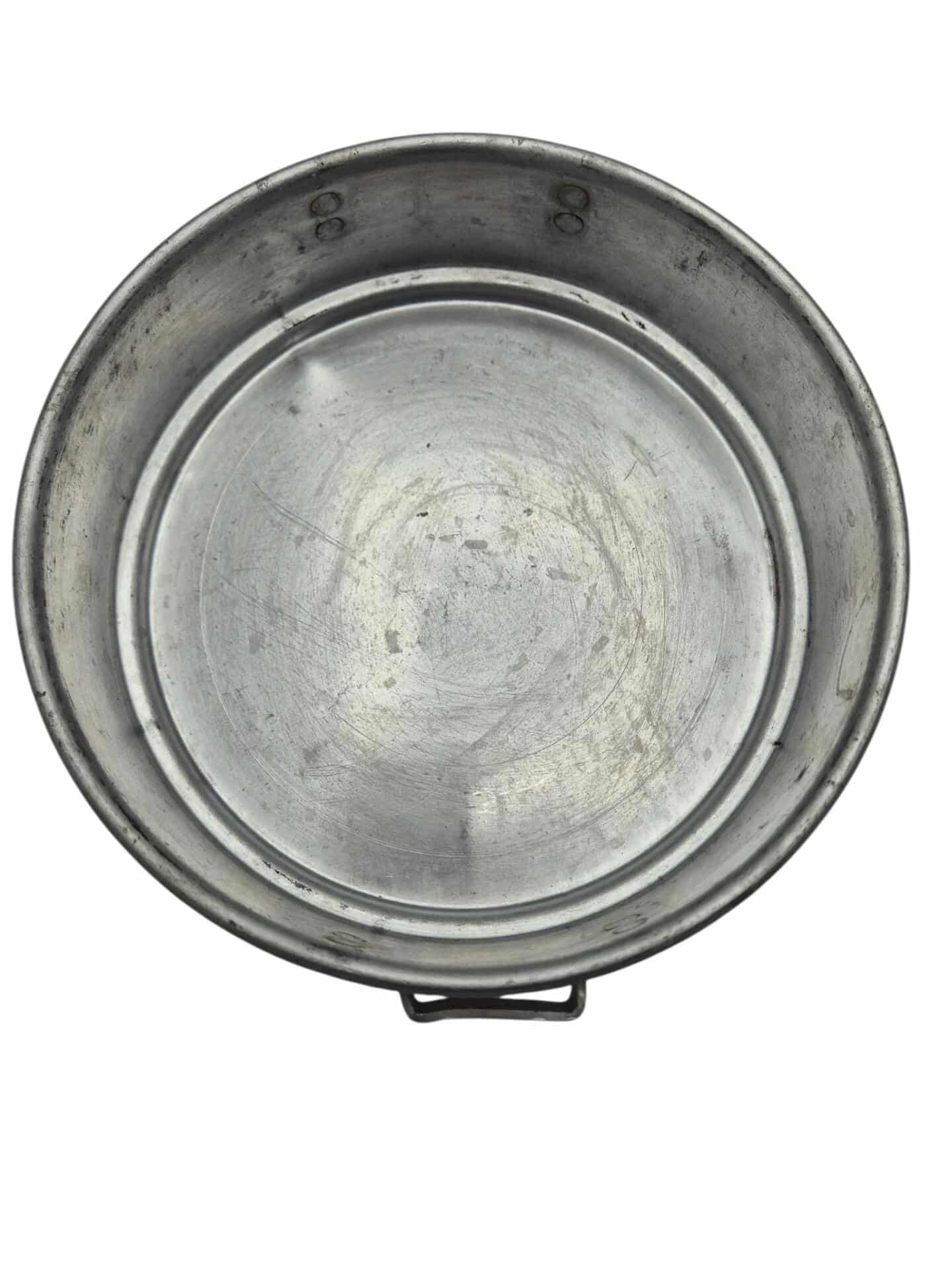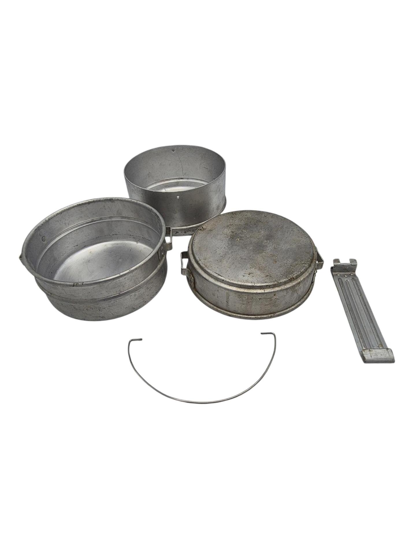 Prachtige complete KNIL eetketel in nog zeer goede conditie. De ketel is bijna helemaal compleet, hij mist 1 handvat, het hengsel voor de grote pan zit er wel bij. Meestal missen deze accessoires.