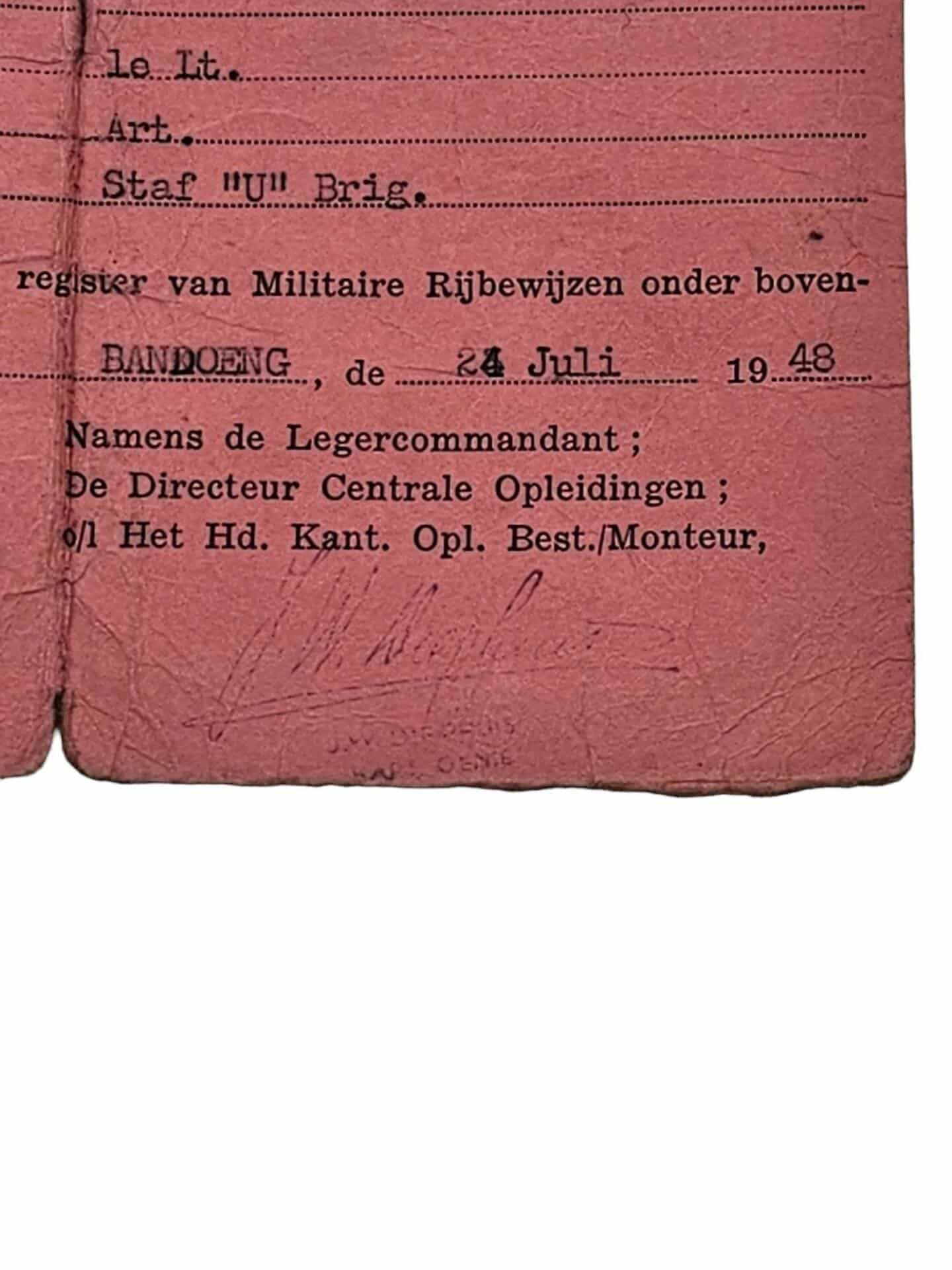 Leuk KNIL militair rijbewijs. Het rijbewijs is in een gebruikte conditie. Alles is nog goed leesbaar en mooi gestempeld.