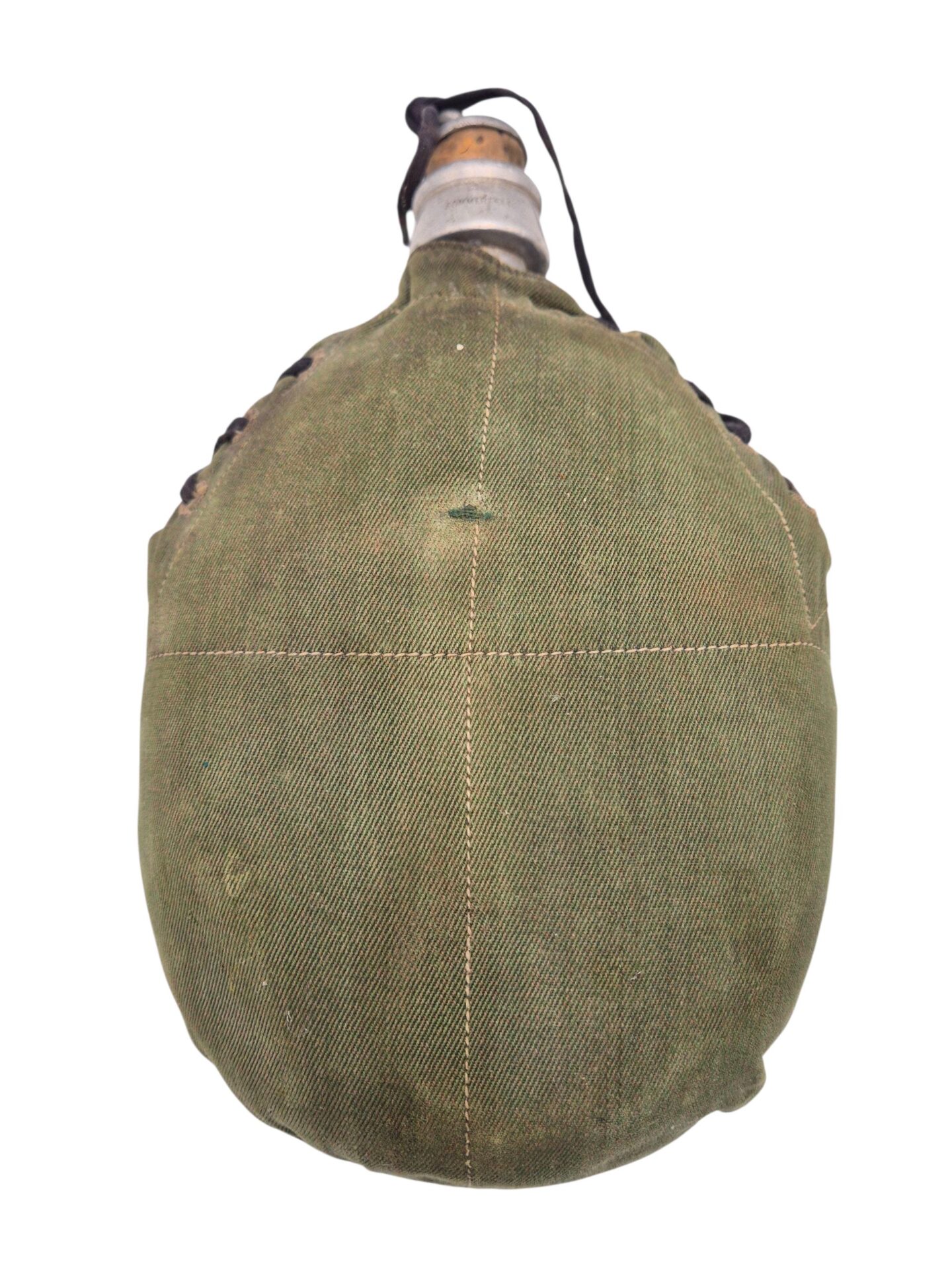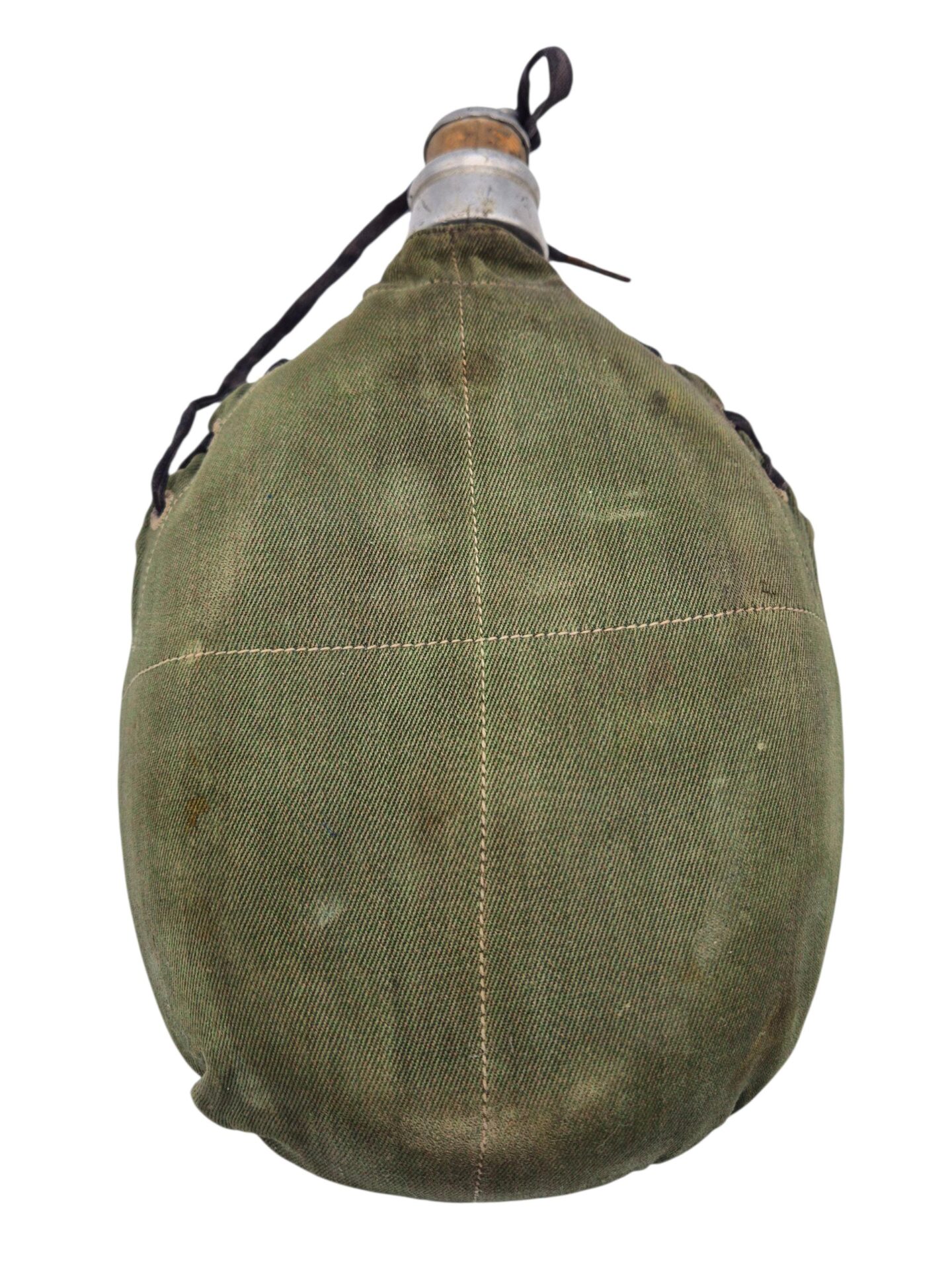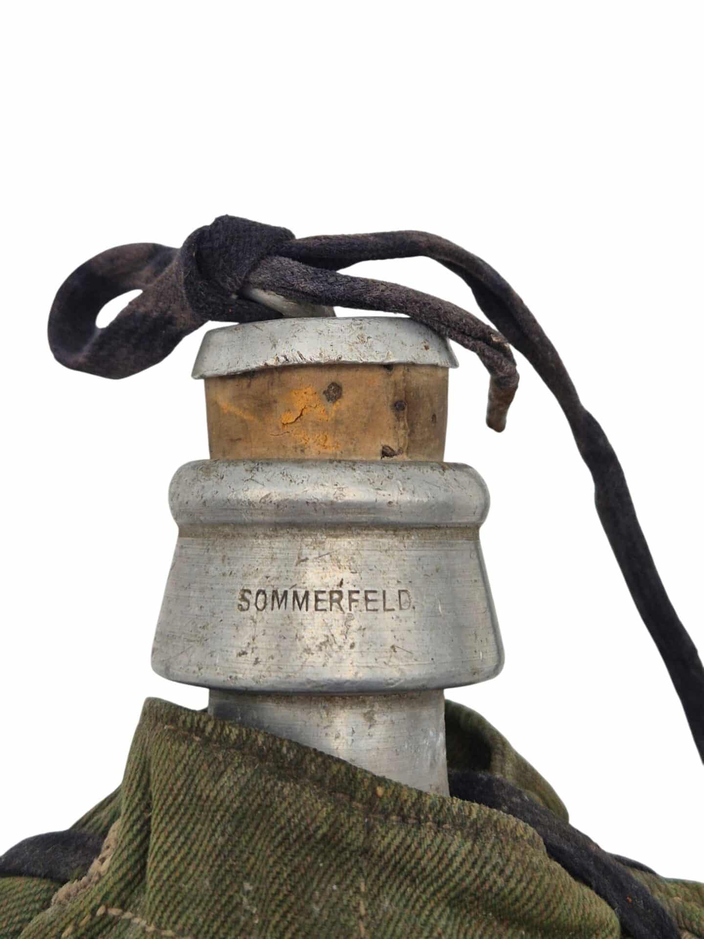 In zeer goede staat verkerende KNIL veldfles met lederen draagstel. De veldfles is gemaakt door Sommerfeld en er zit een hoes omhoog gemaakt van garoet B stof. De hoes is compleet met de sluitveter die pas eind jaren 30 ingevoerd is. De lederen draagstel is niet gemerkt maar verkeerd in een bijzonder goede staat. In deze conditie zelden aangeboden.