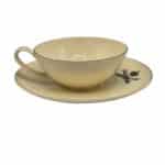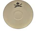 Mooie 19e -eeuwse kop en schotel. De kop is gemarkeerd Petrus Regout & Co Maastricht deze markering is van voor 1900. Het betreft hier een theekopje mooi voorzien van het gekroonde artillerie logo. De schotel is niet gestempeld. Beiden zijn nog in een zeer goede conditie. Mooi setje zoals gebruikt in de officiers kantine.