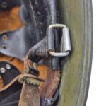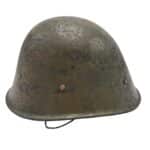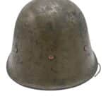 Nederlandse KNIL M41 helm. Deze helm is gefabriceerd door Milsco in de Verenigde staten in opdracht van de Nederlandse regering. De helm is in een goed gebruikte conditie met alles behalve de nek flap nog aanwezig. De schaal is nog in een goede conditie, de helm heeft wat lichte roest maar de olijfgroene kleur is nog duidelijk zichtbaar. De kin riem is origineel bevestigd en betreft het correcte brede model en gesp. Het vilt in het binnenwerk is nog in een zeer goede conditie.