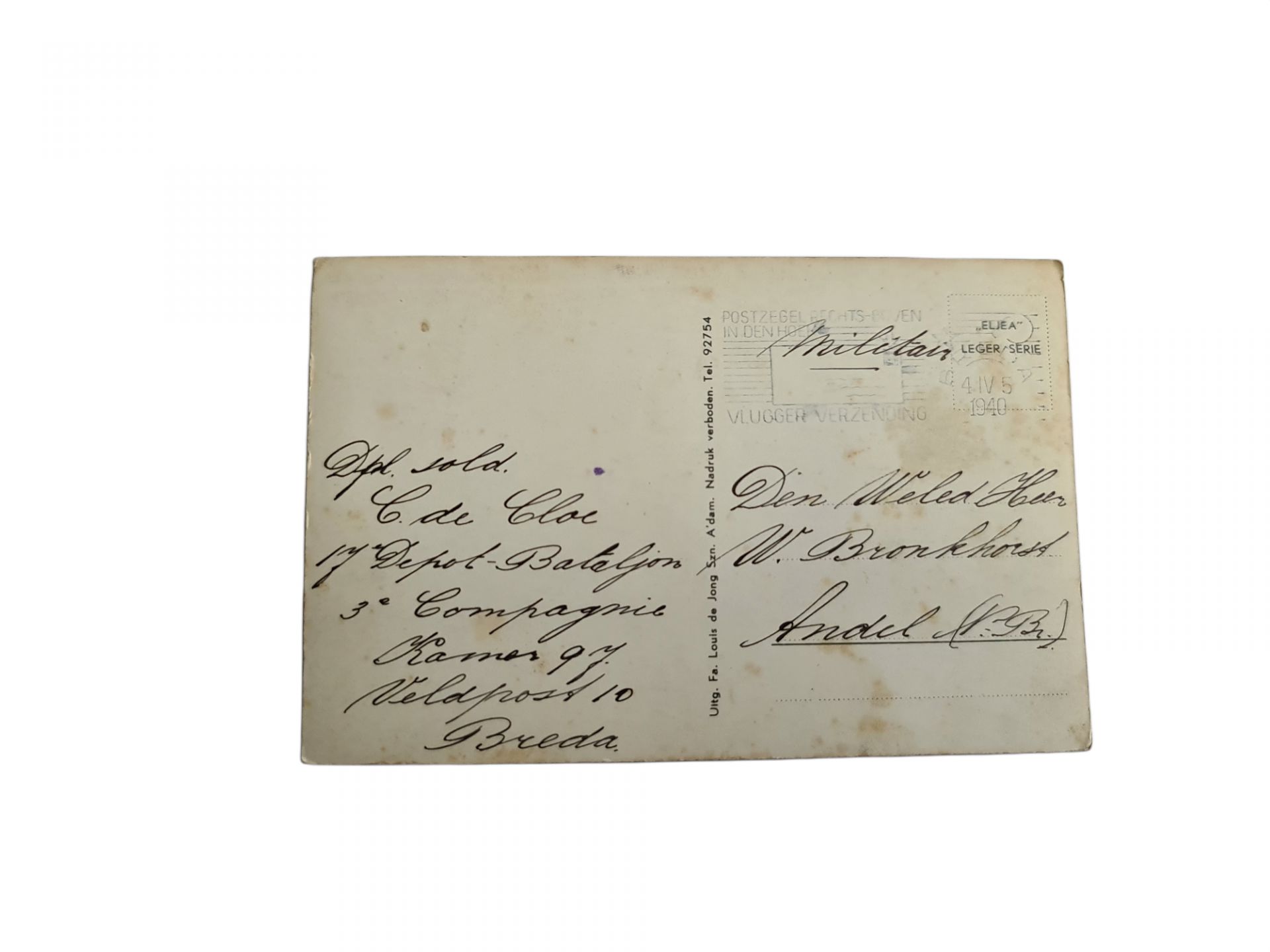 Mobilisatie ansichtkaart 17e depot bataljon Breda. Leuke afbeelding met een matroos en een infanterist.