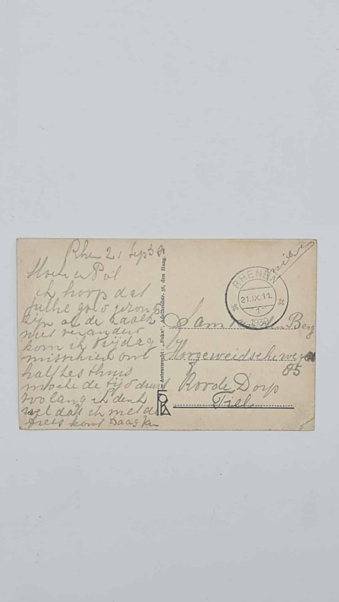 Mooie beschreven ansichtkaart uit de mobilisatie van 1939-1940. De kaart is afgestempeld in Rhenen.