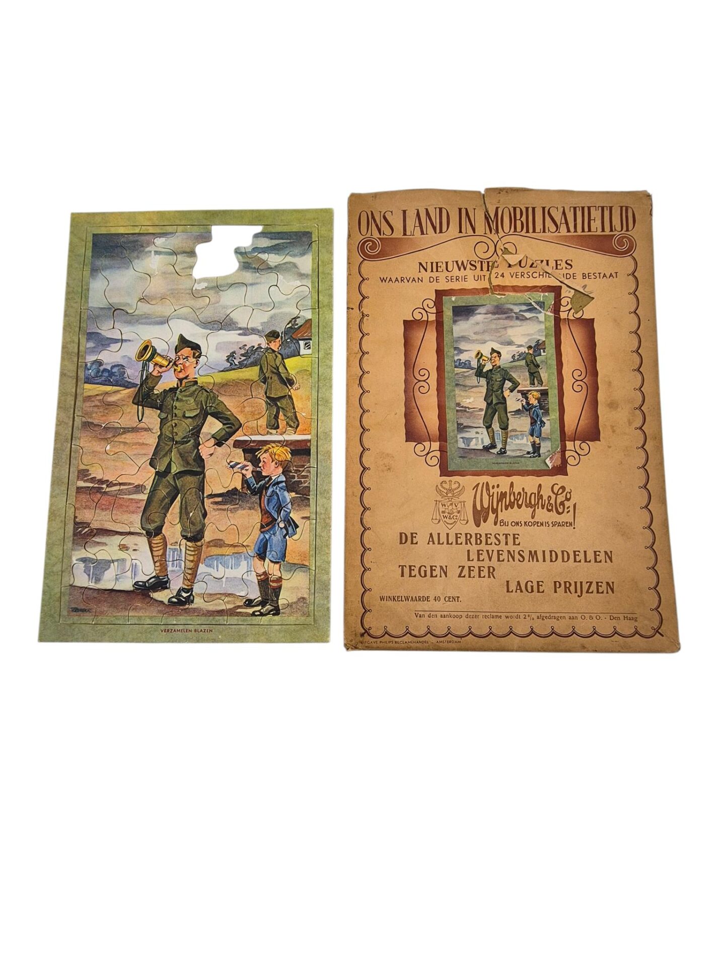 Mooie Nederlandse mobilisatiepuzzel met originele envelop. De puzzel is nog in een goede conditie hij mist alleen 1 stukje. De puzzel is nog mooi van kleur en een erg leuk stukje uit de mobilisatie.