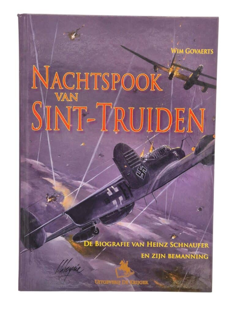 Het boek is gelezen echter nog in een zeer goede conditie. Nachtspook van Sint Truiden. De biografie van Heinz Schnaufer en zijn bemanning. 304 pagina’s. Foto’s, documenten, tabellen. Tijdens de Tweede Wereldoorlog was het luchtruim boven België en Nederland het jachtveld van een van de meest beruchte piloten uit de luchtvaartgeschiedenis : Heinz Schnaufer en zijn bemanning schakelden maar liefst 121 RAF-bommenwerpers uit, ofwel zowat negenhonderd vliegeniers. Zeer interessant boek dat maar in 1 oplage is uitgegeven.