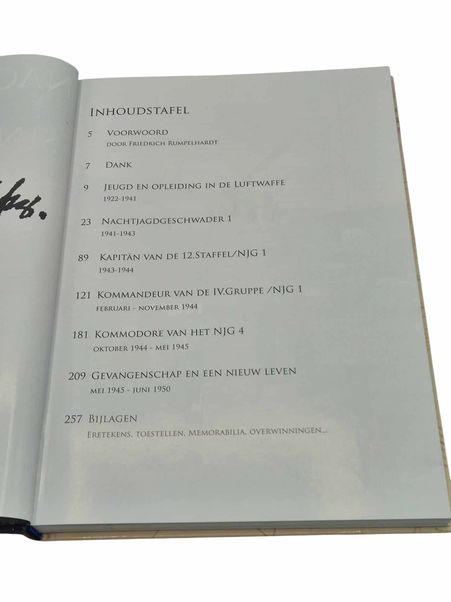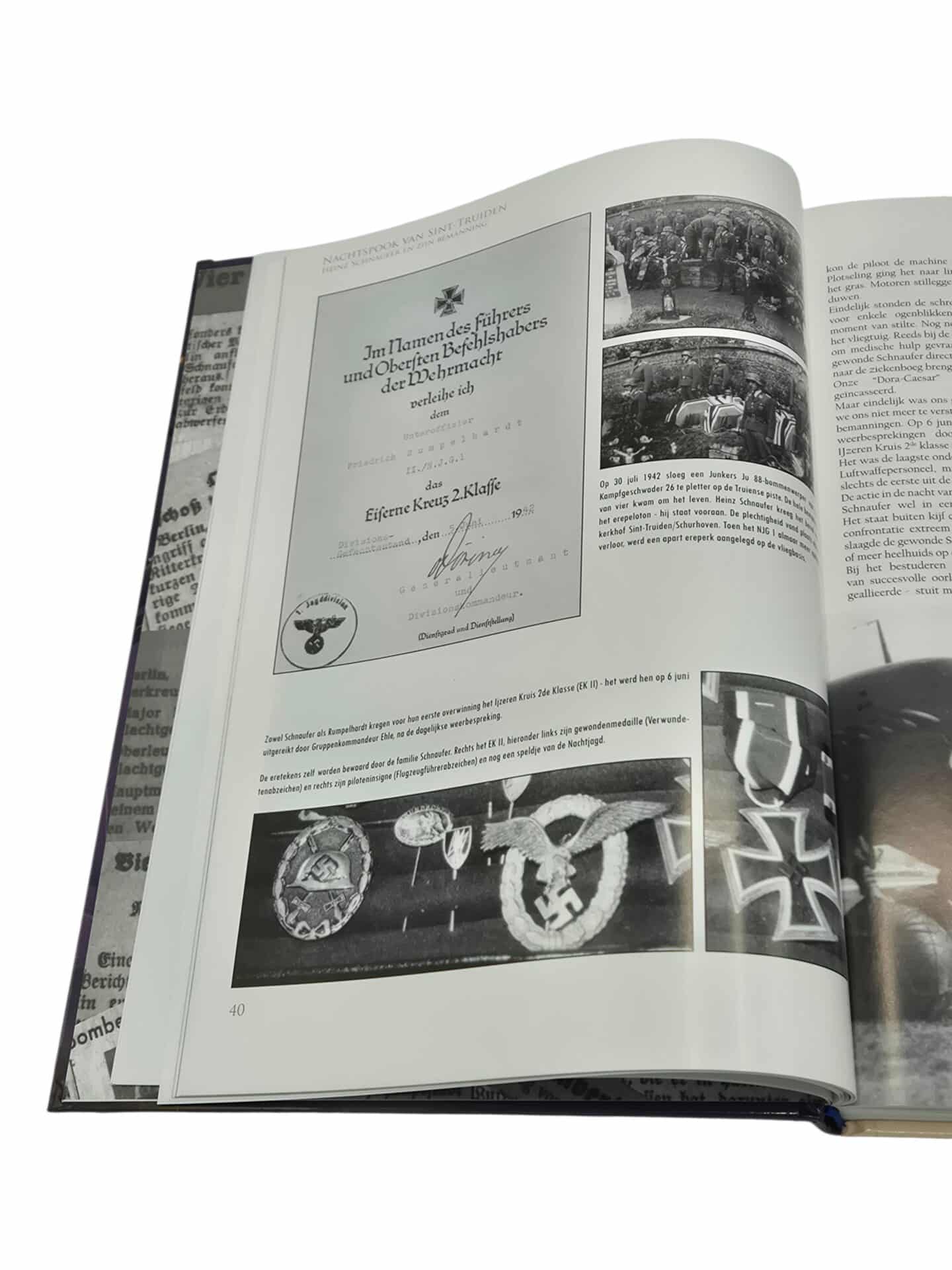 Het boek is gelezen echter nog in een zeer goede conditie. Nachtspook van Sint Truiden. De biografie van Heinz Schnaufer en zijn bemanning. 304 pagina’s. Foto’s, documenten, tabellen. Tijdens de Tweede Wereldoorlog was het luchtruim boven België en Nederland het jachtveld van een van de meest beruchte piloten uit de luchtvaartgeschiedenis : Heinz Schnaufer en zijn bemanning schakelden maar liefst 121 RAF-bommenwerpers uit, ofwel zowat negenhonderd vliegeniers. Zeer interessant boek dat maar in 1 oplage is uitgegeven.