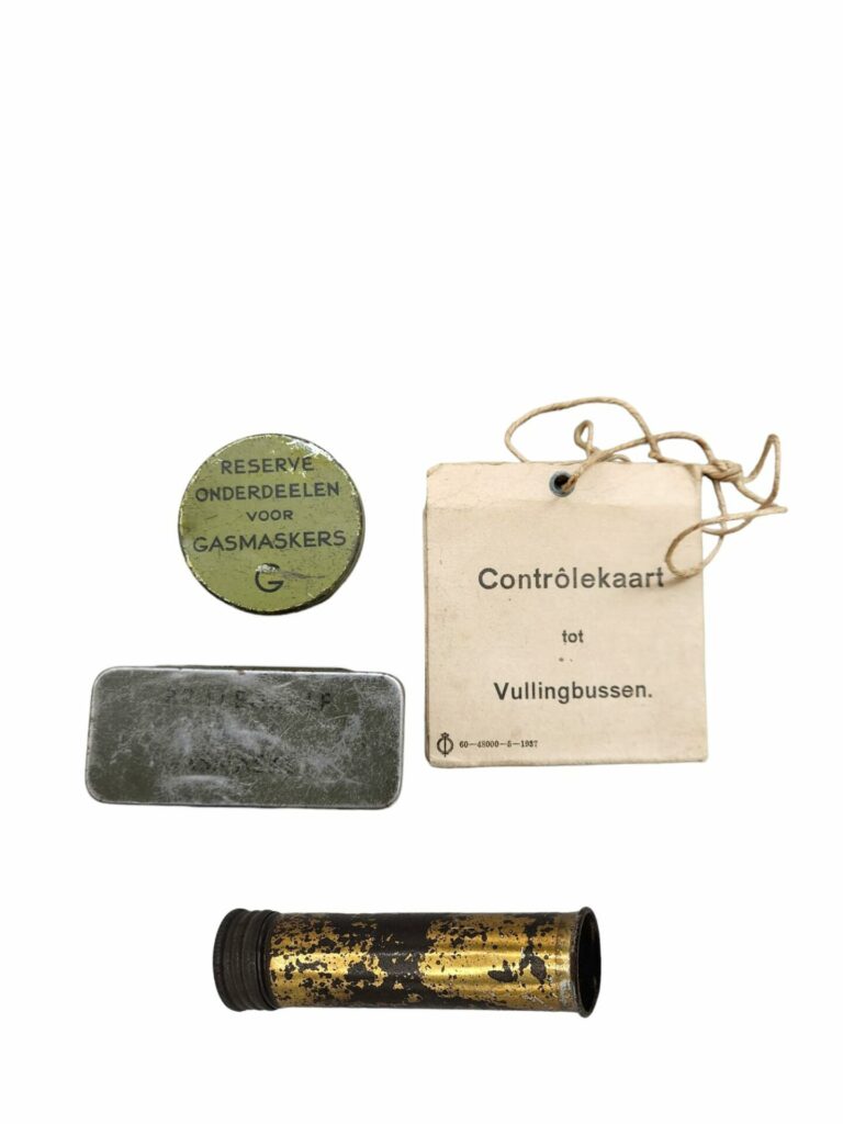 Set accessoires om de gasmasker G tas compleet mee te maken. De set is in in een goede staat en zelfs inclusief de vaak missende controle kaart. Prachtige set om het gasmasker compleet te maken.