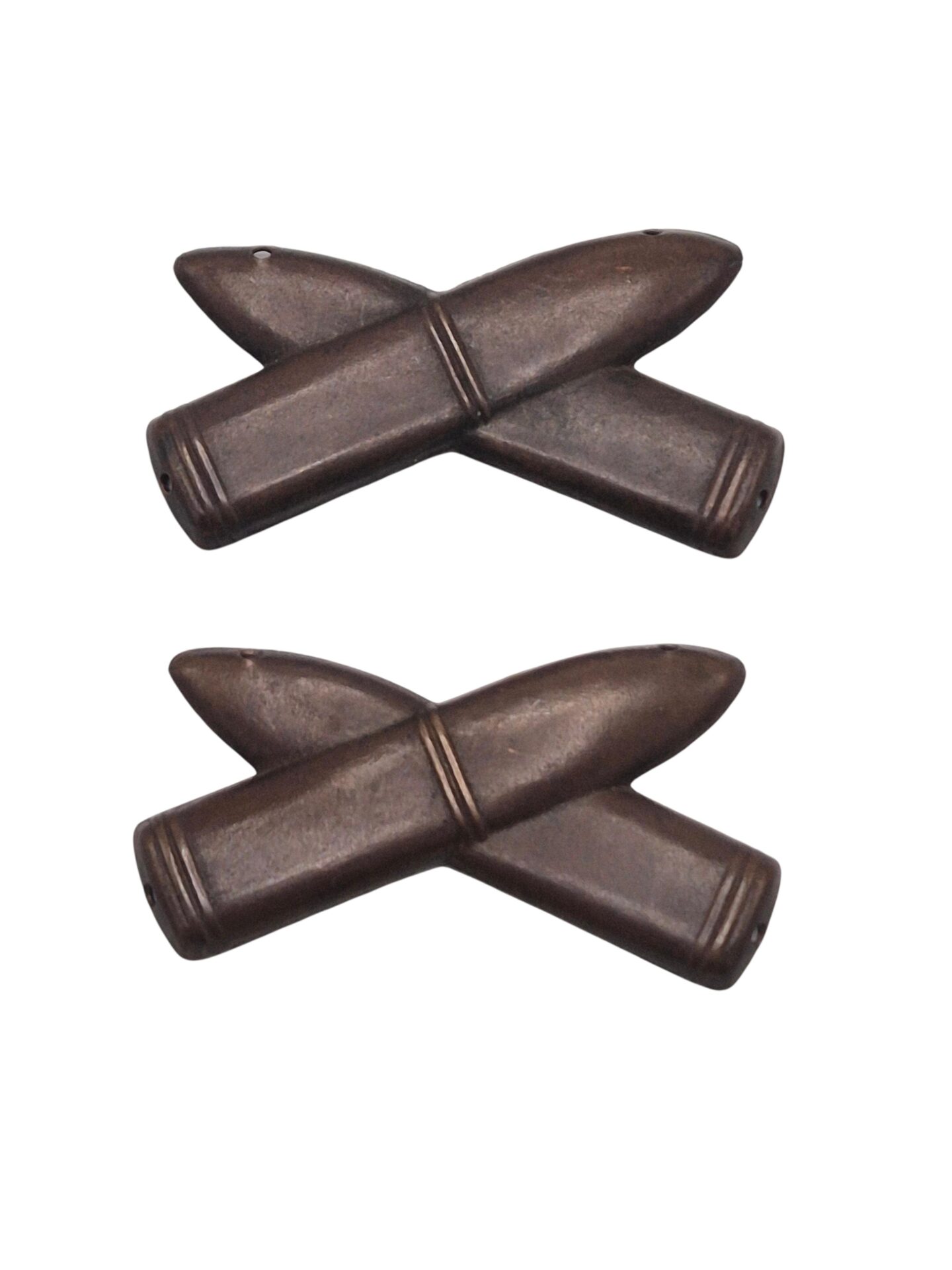 Vooroorlogs setje Nederlands manschappen kraagemblemen kustartillerie. De emblemen verkeren in een goede staat.