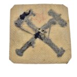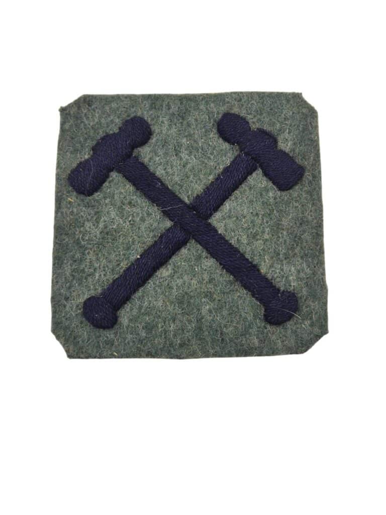 Zeldzaam 2e model Nederlands manschappen vaardigheidsembleem voor monteur. Dit embleem is alleen in gebruik geweest vanaf 11 september 1923 t/m de mobilisatie in 1939. Het embleem is gemaakt van veldgrijze stof met daarop 2 in blauwe wol gekruiste hamers, wat betekend dat het het vaardigheidsembleem is voor een monteur in de rang van soldaat of korporaal. Het embleem verkeerd in een extreem goede staat, het embleem is nooit op een uniform bevestigd.