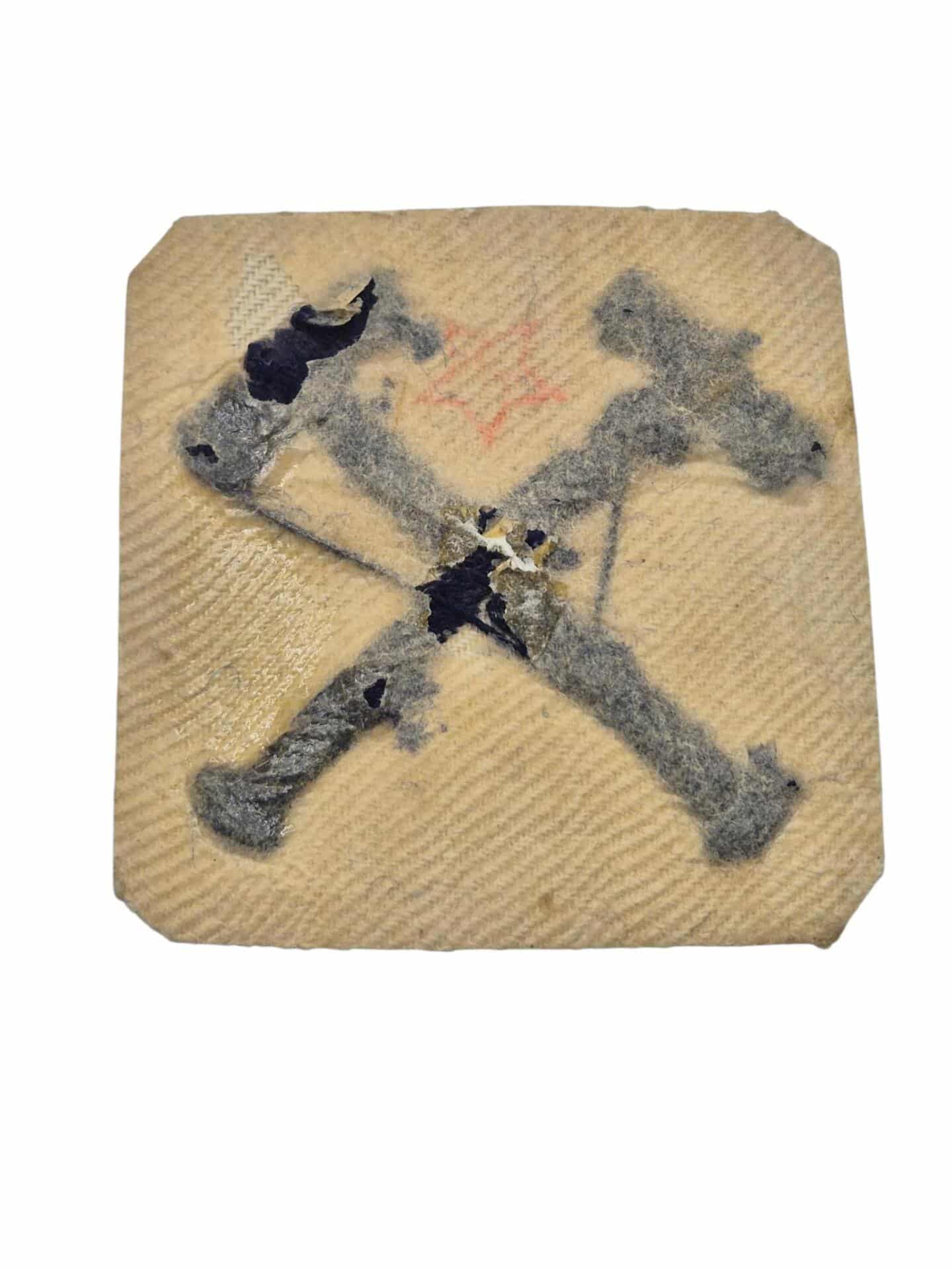 Zeldzaam 2e model Nederlands manschappen vaardigheidsembleem voor monteur. Dit embleem is alleen in gebruik geweest vanaf 11 september 1923 t/m de mobilisatie in 1939. Het embleem is gemaakt van veldgrijze stof met daarop 2 in blauwe wol gekruiste hamers, wat betekend dat het het vaardigheidsembleem is voor een monteur in de rang van soldaat of korporaal. Het embleem verkeerd in een extreem goede staat, het embleem is nooit op een uniform bevestigd.