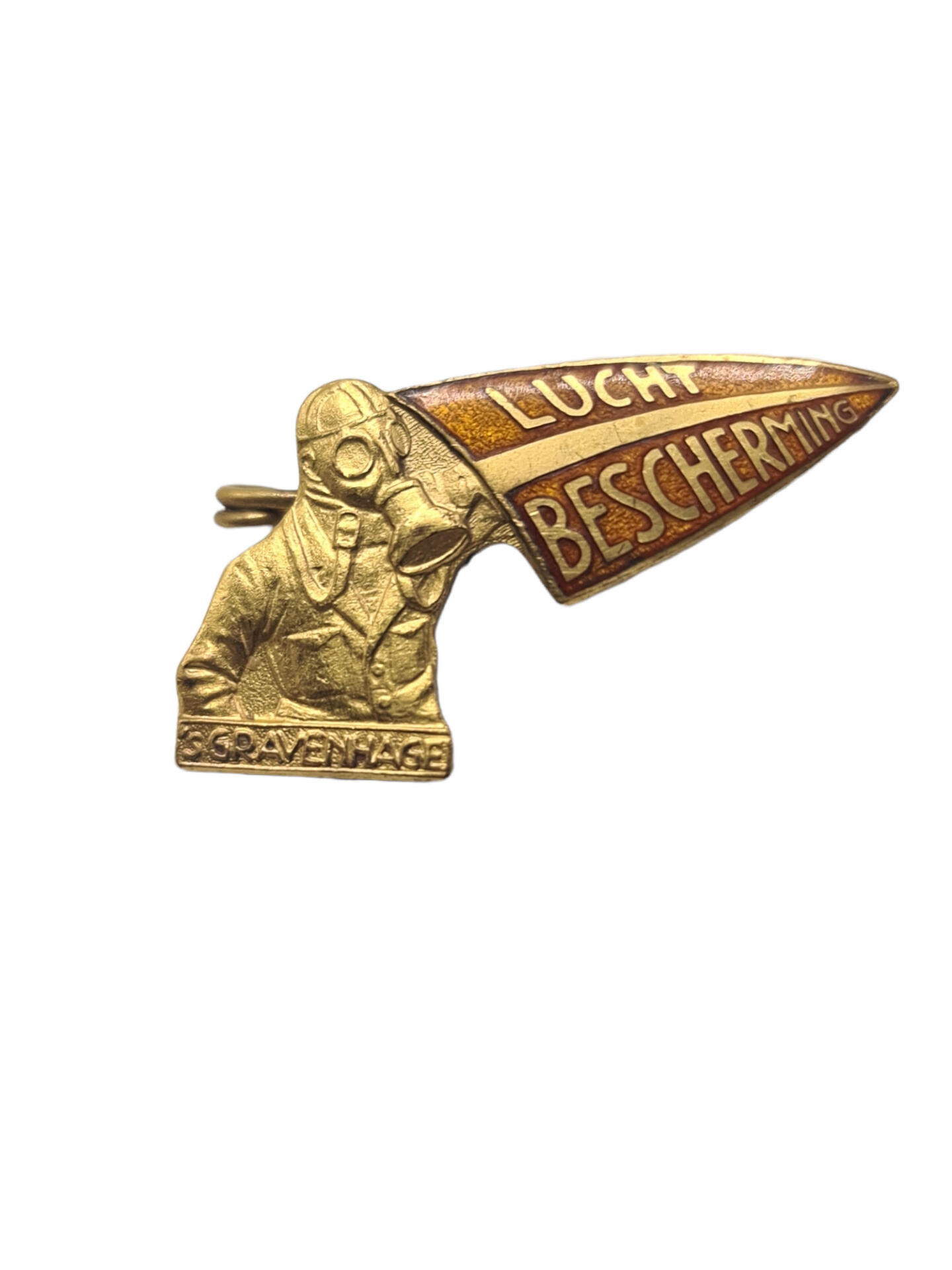 Nederlands speldje uitgereikt aan leden van de luchtbeschermingsdienst Den Haag. Het speldje is gemaakt door Koninklijke Begeer uit Voorschoten. Zeldzaam speldje en zeker in deze top conditie. Het emaille is nog prachtig en het speldje is nog compleet verguld.
