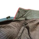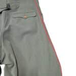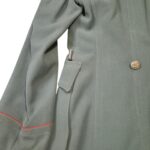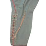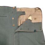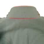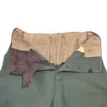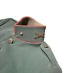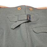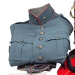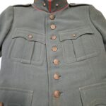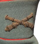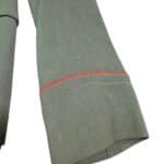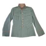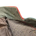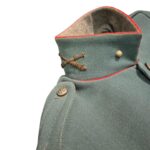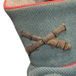 Prachtige set van een vaandrig der artillerie, dit betreft een der laagste officiersrangen. Het pak is gemaakt van een laat jaren 30 blauwgrijze whipcord stof. Op de foto´s komt de kleur niet helemaal goed naar voren. De Jas is in een zeer goede conditie met enkele kleine slijtageplekjes, geen motgaten. De kraag  met de in geborduurde kanonnen is in een zeer goede conditie. De broek heeft een iets lichtere kleur maar is wel gemaakt van exact dezelfde stof en is zo als set gevonden. De broek heeft 1 klein motgaatje in het kruis. Mooie  pofbroek met felrode biezen, met nog de originele bindveters. Mooie set van een adjudant van het wapen der artillerie