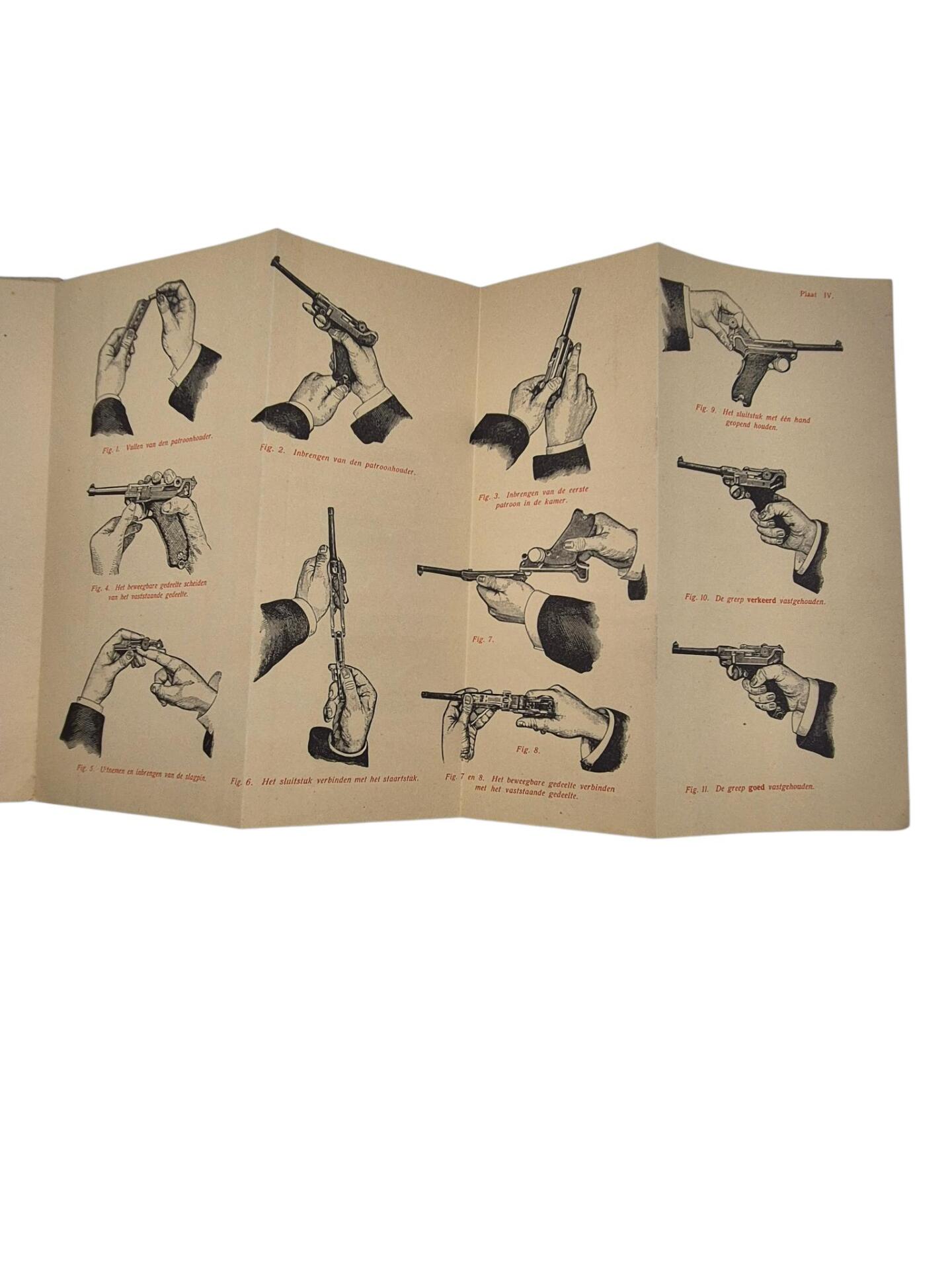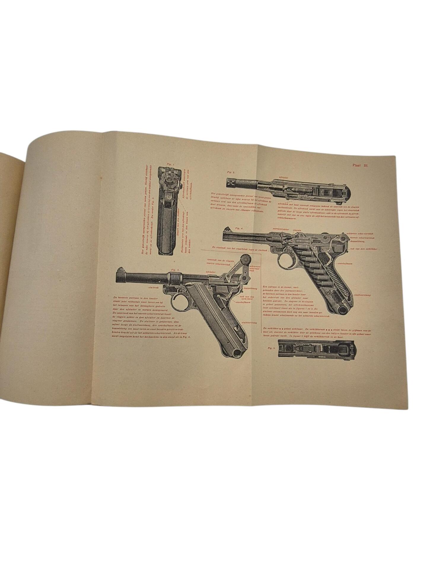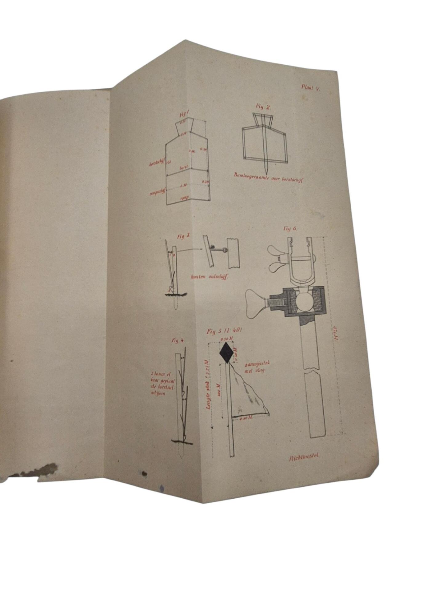 Extreem zeldzaam voorschrift voor het M11 pistool, de “Nederlandse” Luger. Deze was vooral in gebruik bij de mariniers en in het KNIL. Het voorschrift is in een goede staat met alleen op de laatste plaat een klein beetje schade door ongedierte. Het voorschrift is voorzien van bijlagen en aanpassingen en nog alle 5 de platen zijn aanwezig. Het voorschrift is op naam van Vos, er is ooit een mariniershelm verkocht met deze achternaam erin.