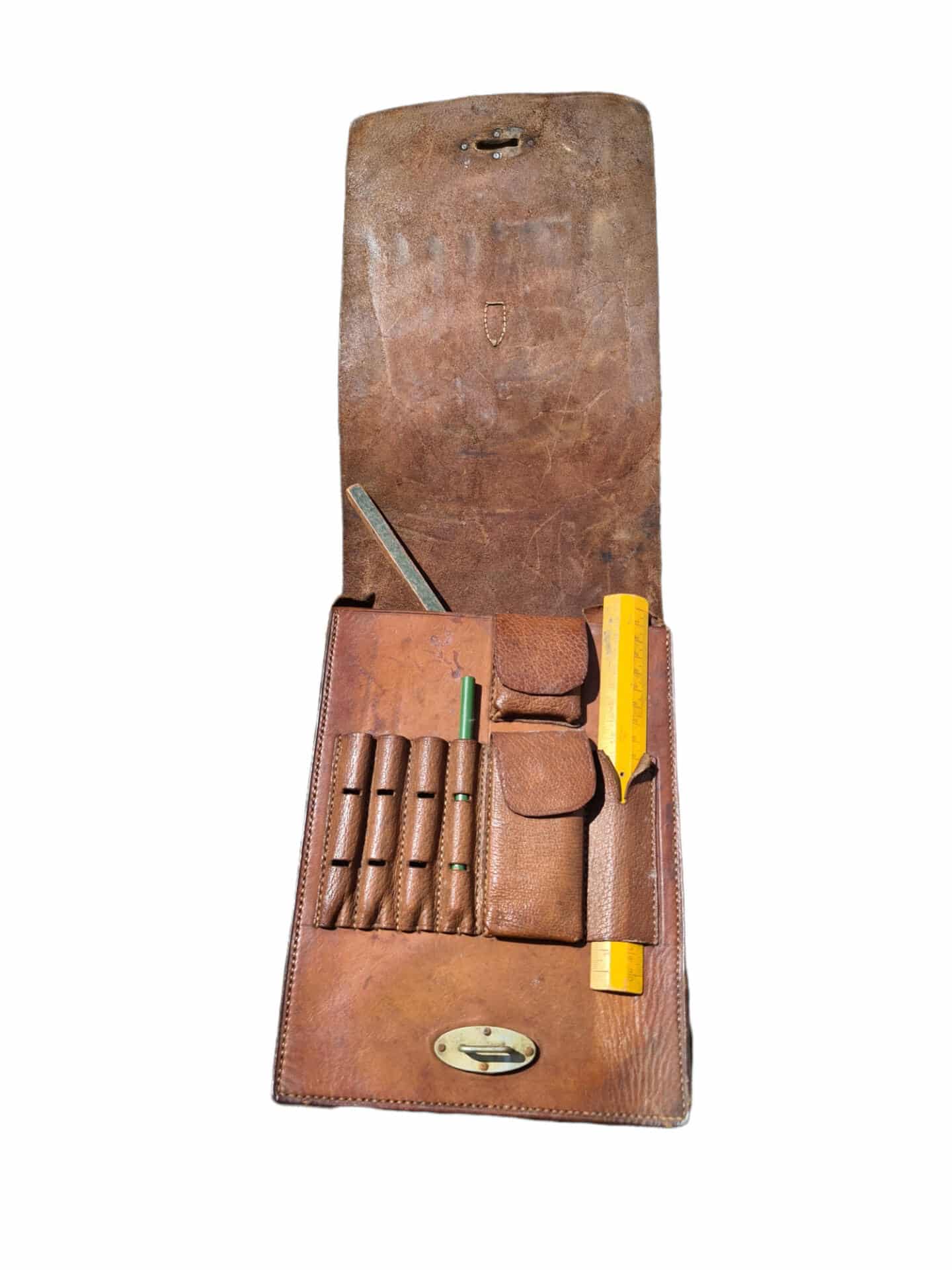 Nederlandse leren bereden officieren kaarten tas. De tas is voorzien van leren riempje op de tas zowel aan de koppel of het zadel te bevestigen. De kaarten is niet maker gemarkeerd maar nog wel voorzien van de inscriptie Boven aan de binnenzijde. Het leerwerk verkeerd in een mooie bruine en soepele staat. Niet veel voorkomende kaarten tas met dubbele vakken!
