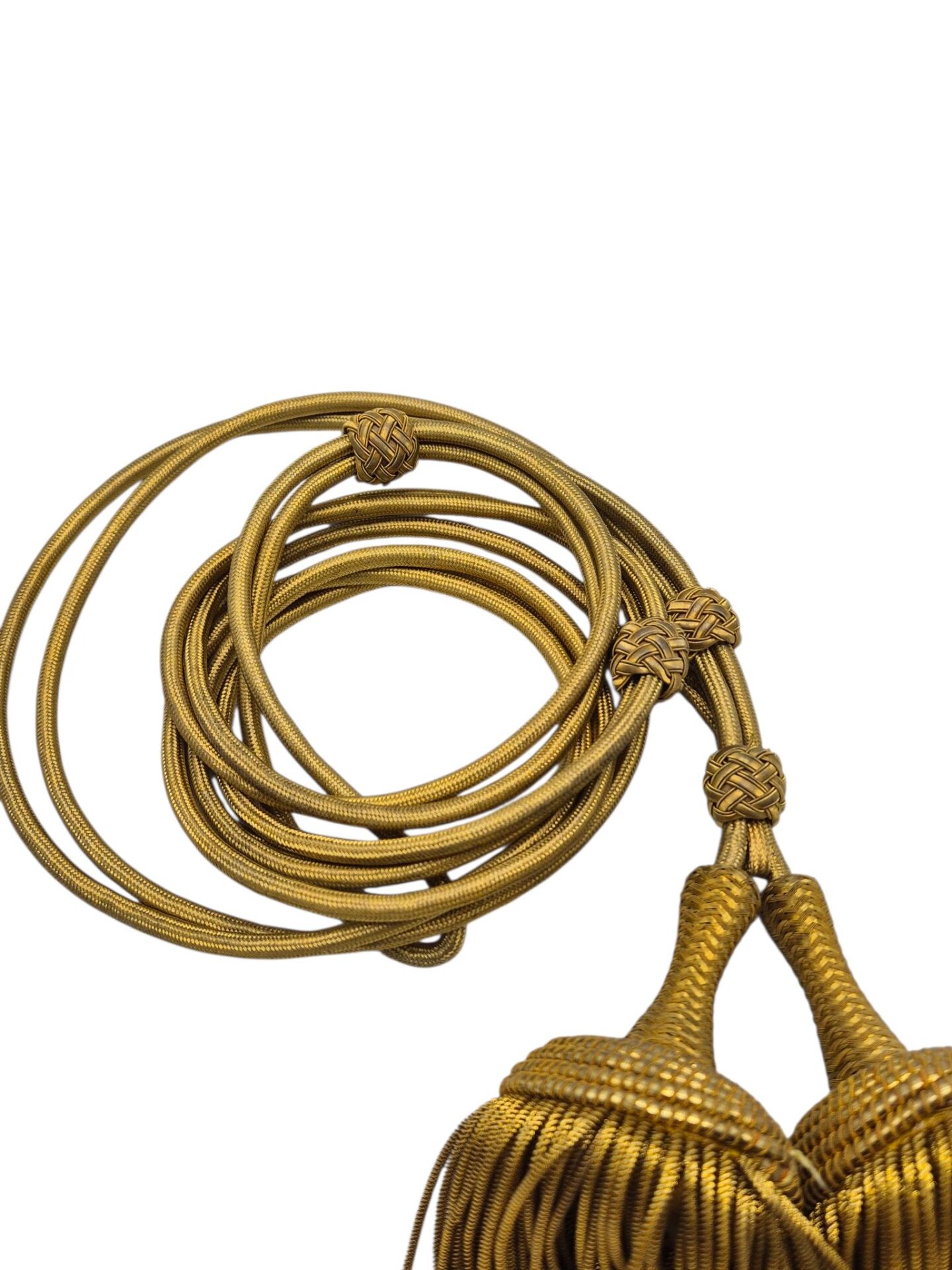 Gouden Fouragere voor een 2e luitenant, de fouragere is nog in een prachtige nieuw staat hij glimt nog prachtig. Het lusje om de fouragere aan het uniform te bevestigen is nog volledig intact. De fouragere is helemaal compleet om volgens voorschrift op het uniform te bevestigen.