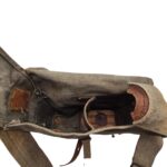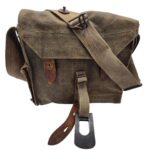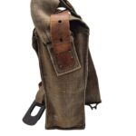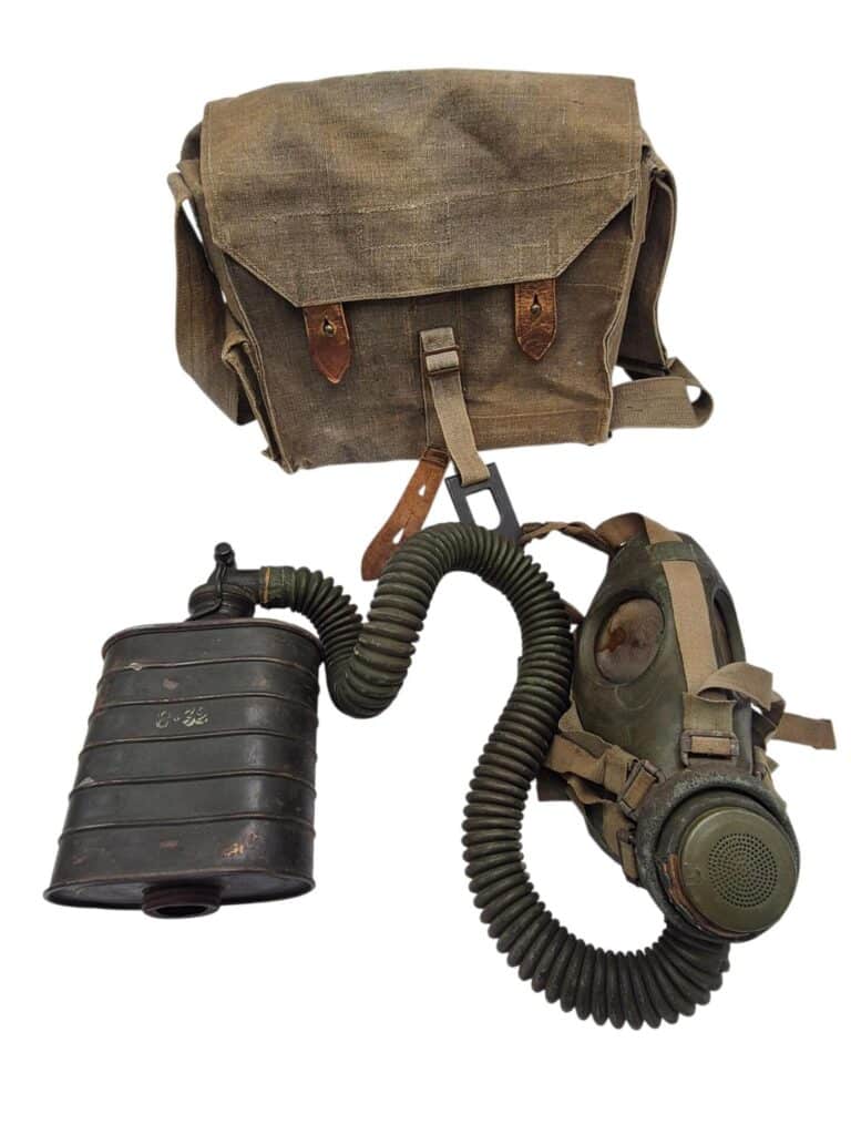 Vooroorlogse Nederlandse gasmaskertas met gasmasker model G voor onberedenen. De tas verkeerd in een nette staat en is gemarkeerd met de O voor onbereden troepen. De model G gasmasker tas is ook herkenbaar aan de metalen clip. Deze wordt op de manschappen koppel geschoven zodat de tas vast hangt. Het leerwerk is allemaal nog zeer soepel en mooi lichtbruin. Het gasmasker en de filterbus verkeren beide nog in een gedragen staat, rond het ventiel is het rubber uitgehard en fragiel, de slang is verder nog in een goede conditie. Mooie vooroorlogse Nederlandse gasmaskertas voor onbereden troepen!