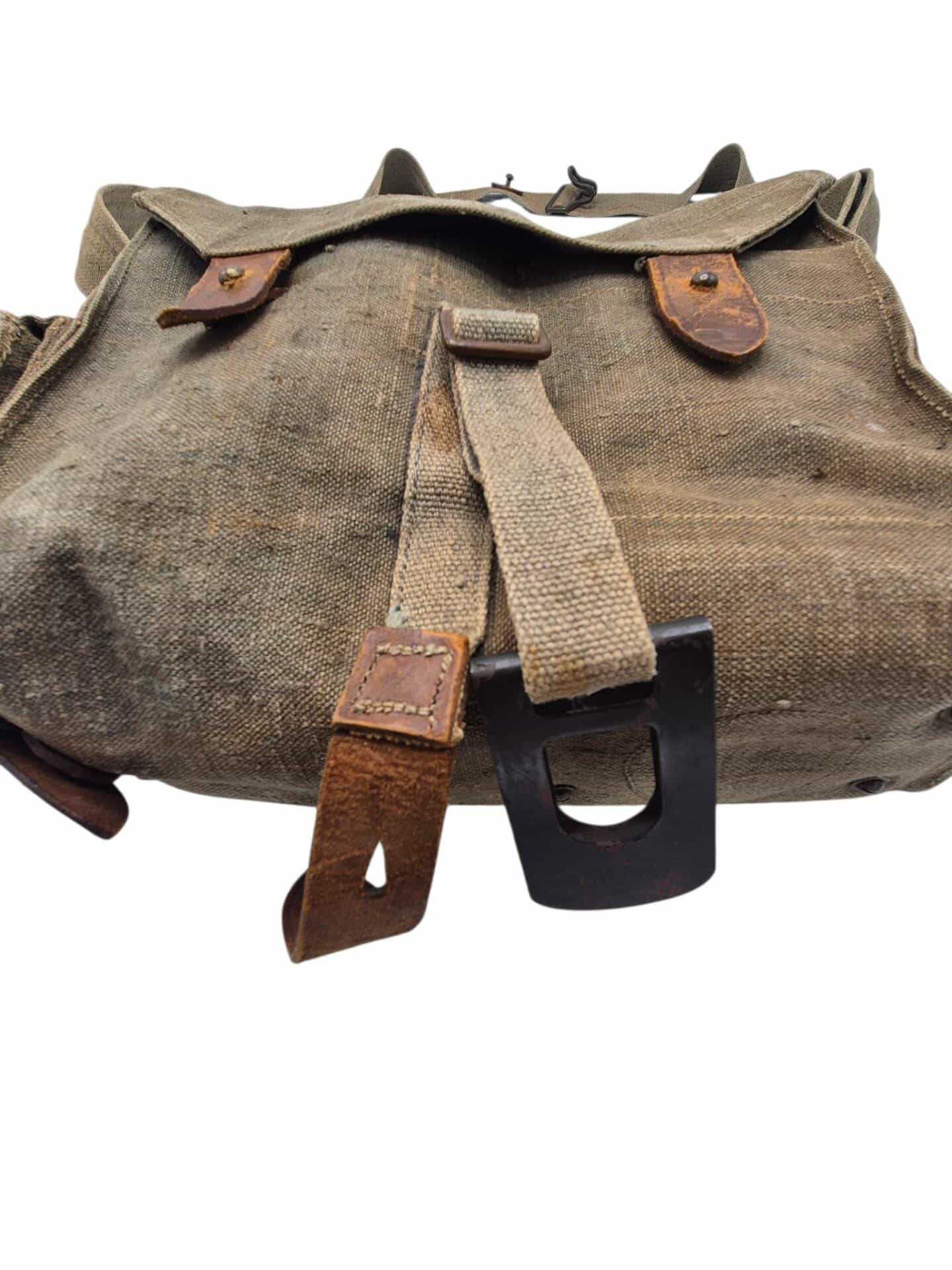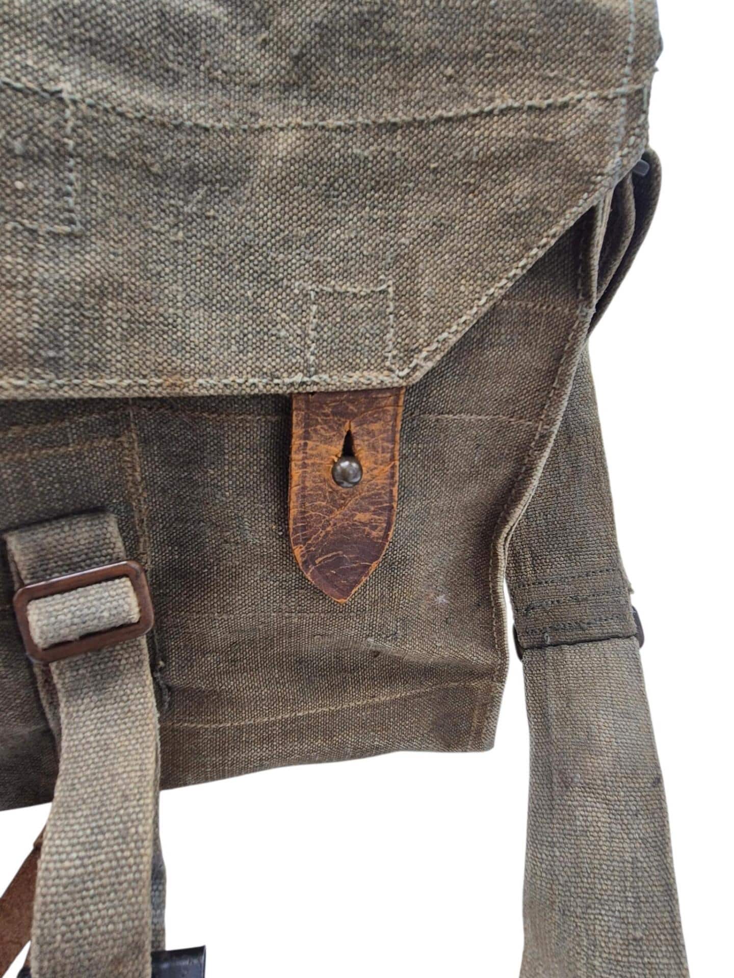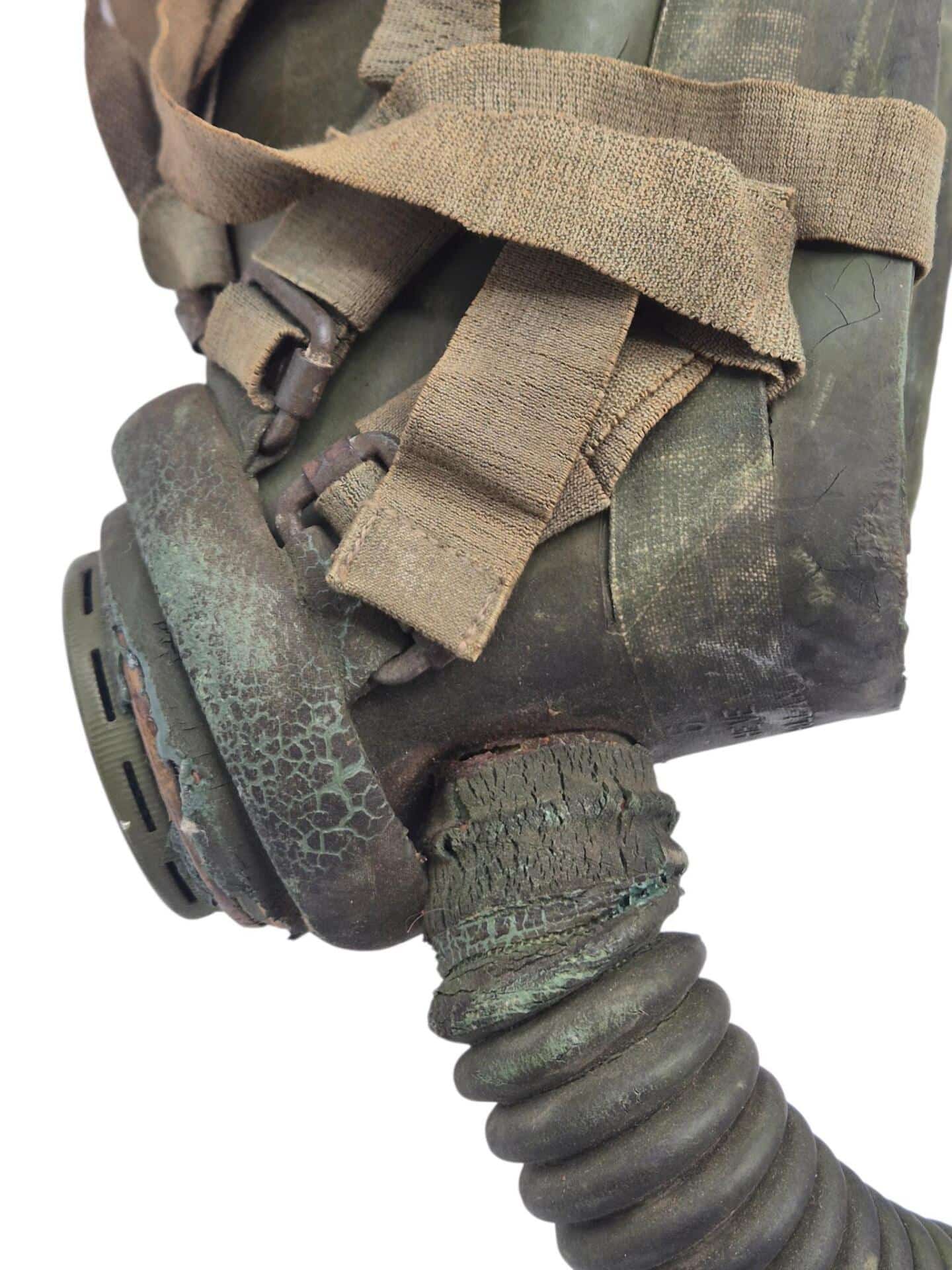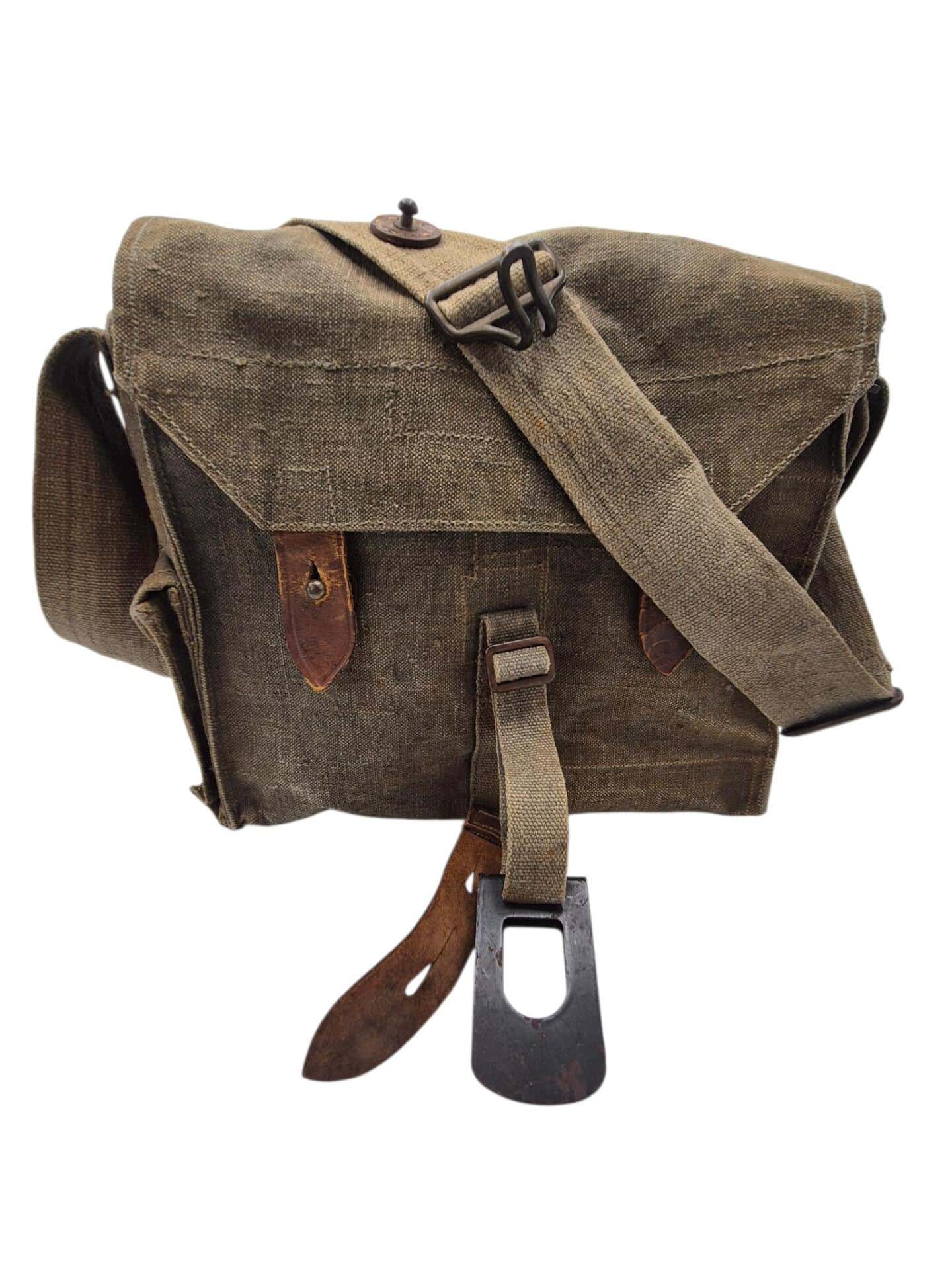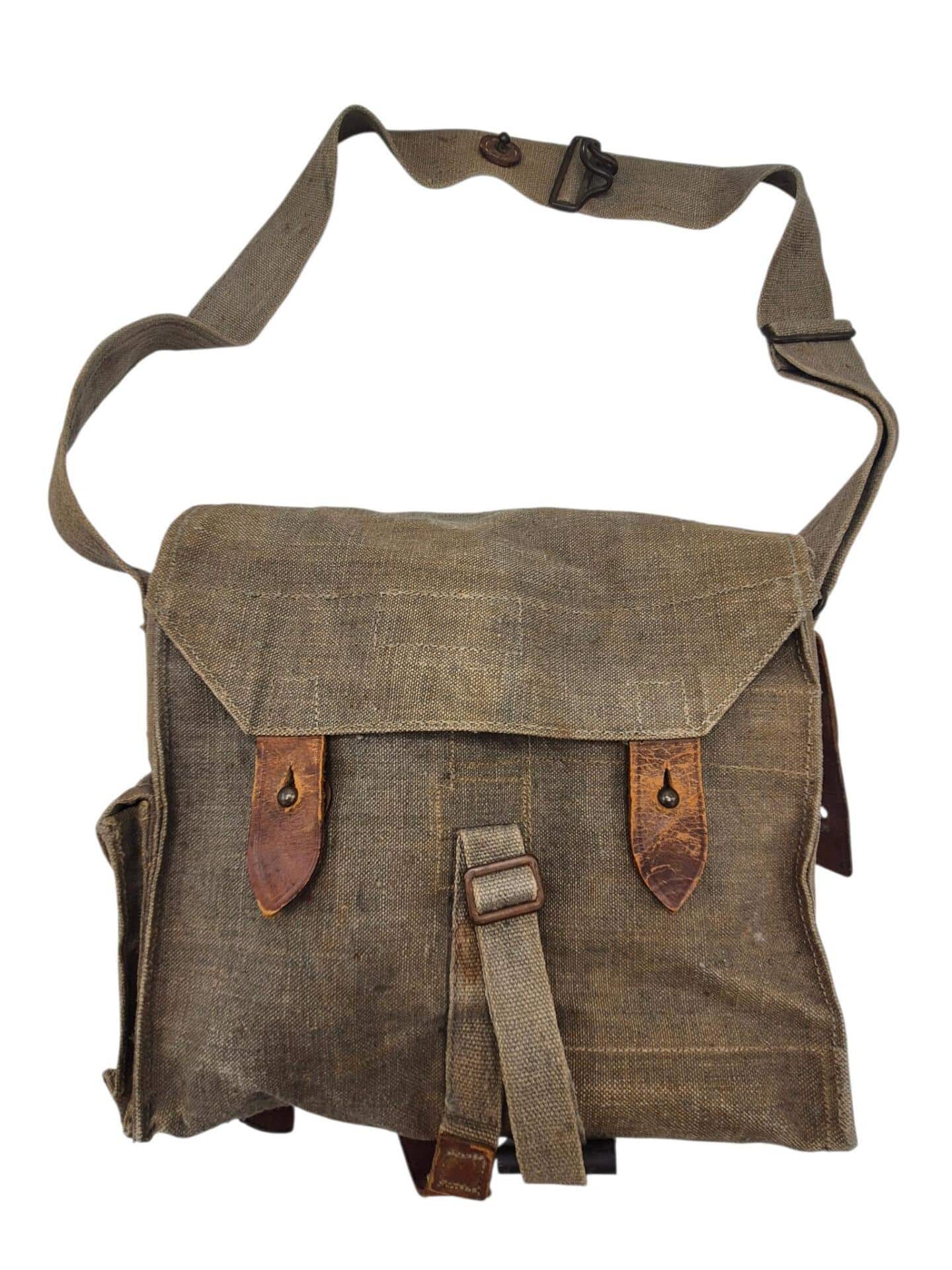 Vooroorlogse Nederlandse gasmaskertas met gasmasker model G voor onberedenen. De tas verkeerd in een nette staat en is gemarkeerd met de O voor onbereden troepen. De model G gasmasker tas is ook herkenbaar aan de metalen clip. Deze wordt op de manschappen koppel geschoven zodat de tas vast hangt. Het leerwerk is allemaal nog zeer soepel en mooi lichtbruin. Het gasmasker en de filterbus verkeren beide nog in een gedragen staat, rond het ventiel is het rubber uitgehard en fragiel, de slang is verder nog in een goede conditie. Mooie vooroorlogse Nederlandse gasmaskertas voor onbereden troepen!