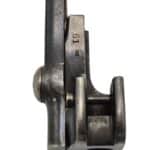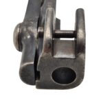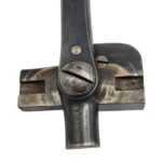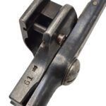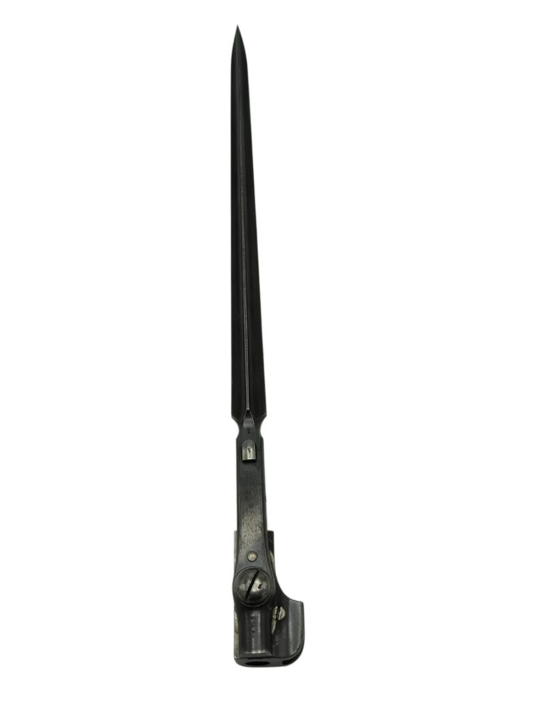 Klapbajonet voor de m95 marechaussee karabijn. Deze karabijn had in de kolf een speciale uitsparing voor de bajonet. Deze bajonet was een opvolger van de standaard M95 bajonet. De karabijn werd met een verbindings ´blok´ gemonteerd aan de voorzijde van de loop. Het lemmet is gekeurd gekroonde P en voorzien van wapennummer  61. Alle onderdelen  zijn mooi nummer gelijk en ook keur gelijk  De blauwing van de bajonet is nog volledig intact. Hele lichte oxidatie aan de binnenzijde van het lemmet.  Mooi weinig gebruikt en zeer zeldzaam exemplaar van een klapbajonet voor de M95 marechaussee karabijn.