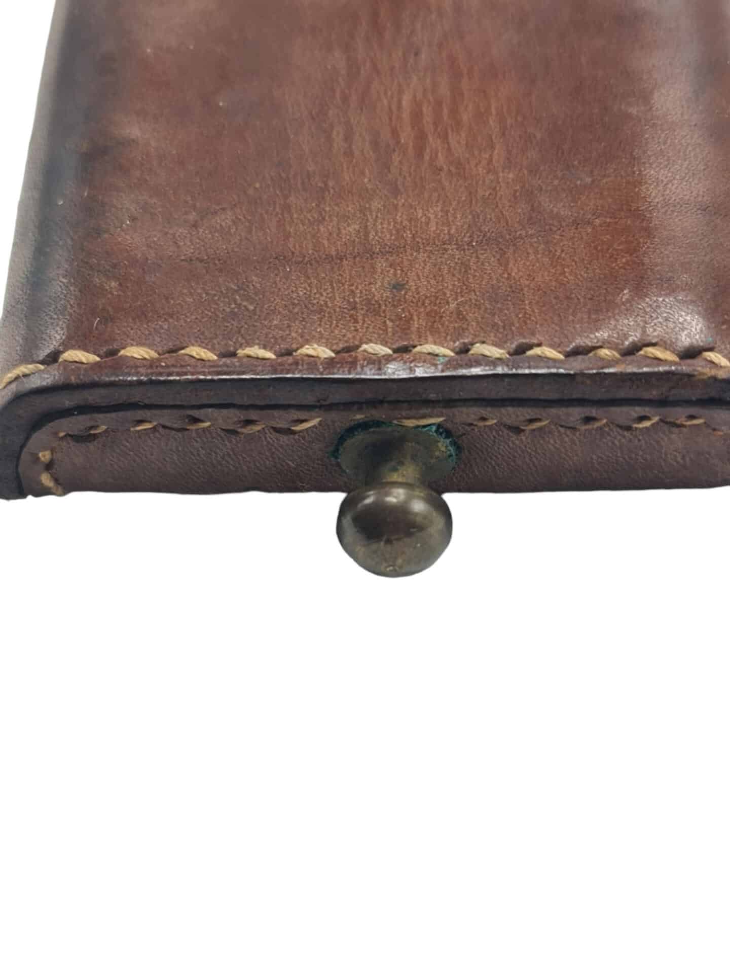 Prachtige set voor het M.25 pistool dit werd door officieren gedragen op de Sam Brown riem Mooi licht bruin pistoolholster van het Nederlandse leger voor het M.25 FN pistool. Het holster verkeerd nog in een extreem goede staat. De binnenkant en achterkant van het holster bevinden zich ook nog in zeer goede staat en zijn nog mooi in de originele lichtbruine kleur. Aan de voorzijde is het wapennummer mooi in gestanst. De sluit lus achterop het holster is een keer verplaatst, het garen dat hiervoor is gebruikt is gelijk aan het garen waar het holster ooit mee vernaaid is, het lijkt op een periodieke aanpassing. Zoals het hoort is dit holster voorzien van een vakje voor het pompstokje. Aan de binnenzijde van de flap staat nog Voorburg geschreven. Het patroonhouder tasje is ook nog in een prachtige lichtbruine staat. Het sluitriempje is nog mooi soepel. De binnenzijde van het riempje is maker gestempeld `De Volharding` aan het puntje is nog net de rode 39 te lezen van CM1939 stempel. Deze rode inkt vervaagd helaas sneller dan de zwarte inkt die de jaren ervoor werd gebruikt. Fantastische set om een officier mee compleet te maken.