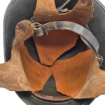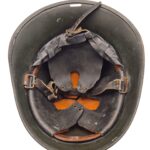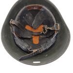 Prachtige M27 helm. De helm is nog het mooie vroege donkergroen en de verf is nog vrijwel gaaf wat bij deze modellen niet vaak voorkomt. De helmplaat is in een mooie conditie. De binnenzijde van de helm is ook nog in een zeer goede staat. De vilten flappen zijn alle 3 aanwezig en niet aangetast door motvraat. Het leer is ook nog mooi soepel. De kinriem is aanwezig. Het binnenwerk is aan de voorzijde door de maker gestanst D De Booij Den Bosch. De helm is niet voorzien van een CM stempel. Prachtige M27 helm met een bijzondere maker voor het binnenwerk.